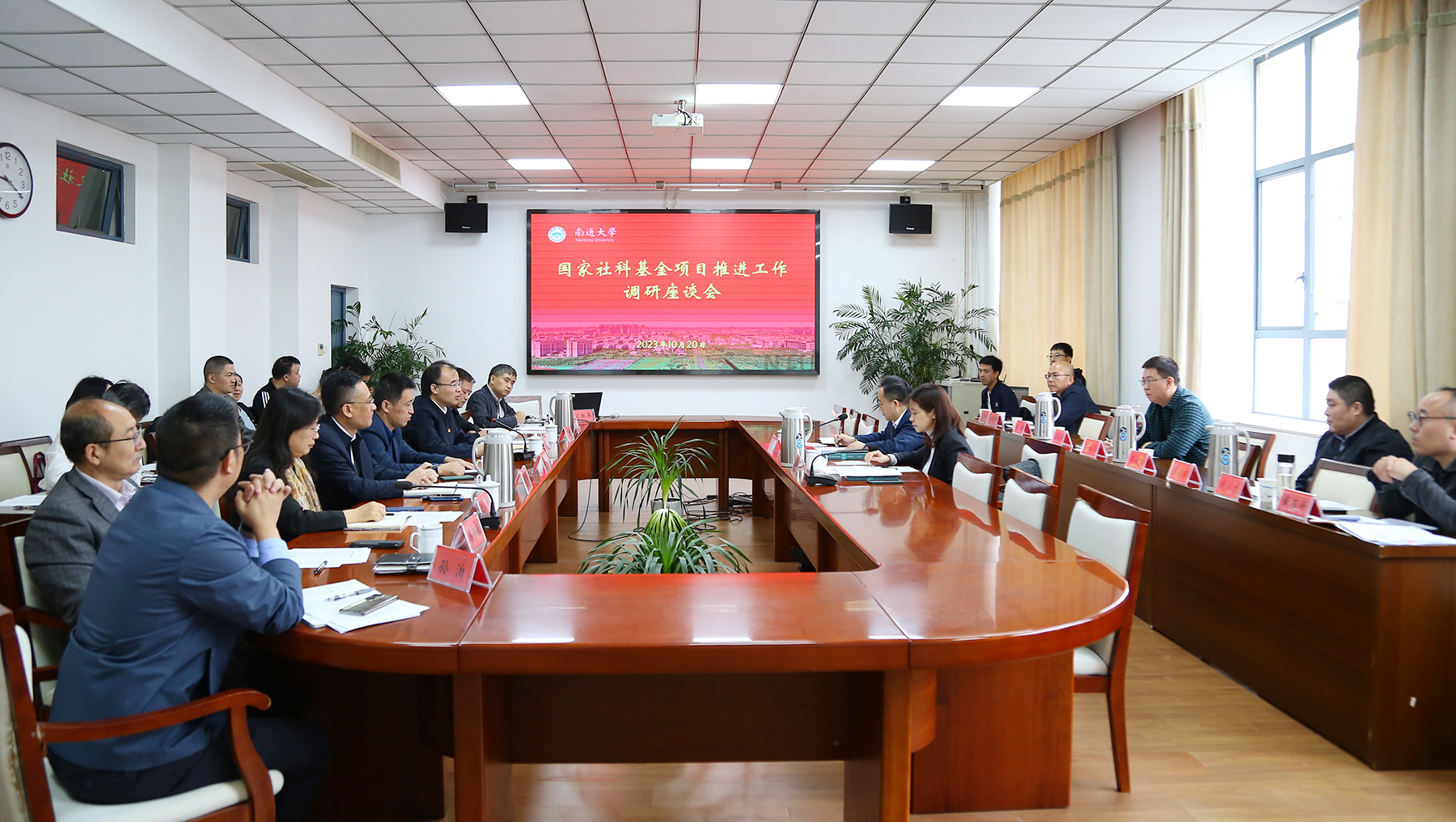 文科学院科研院长、国家社科基金在研项目负责人、有意申报2024年度国家社科基金项目的老师,人文社科处全体人员参加调研交流。