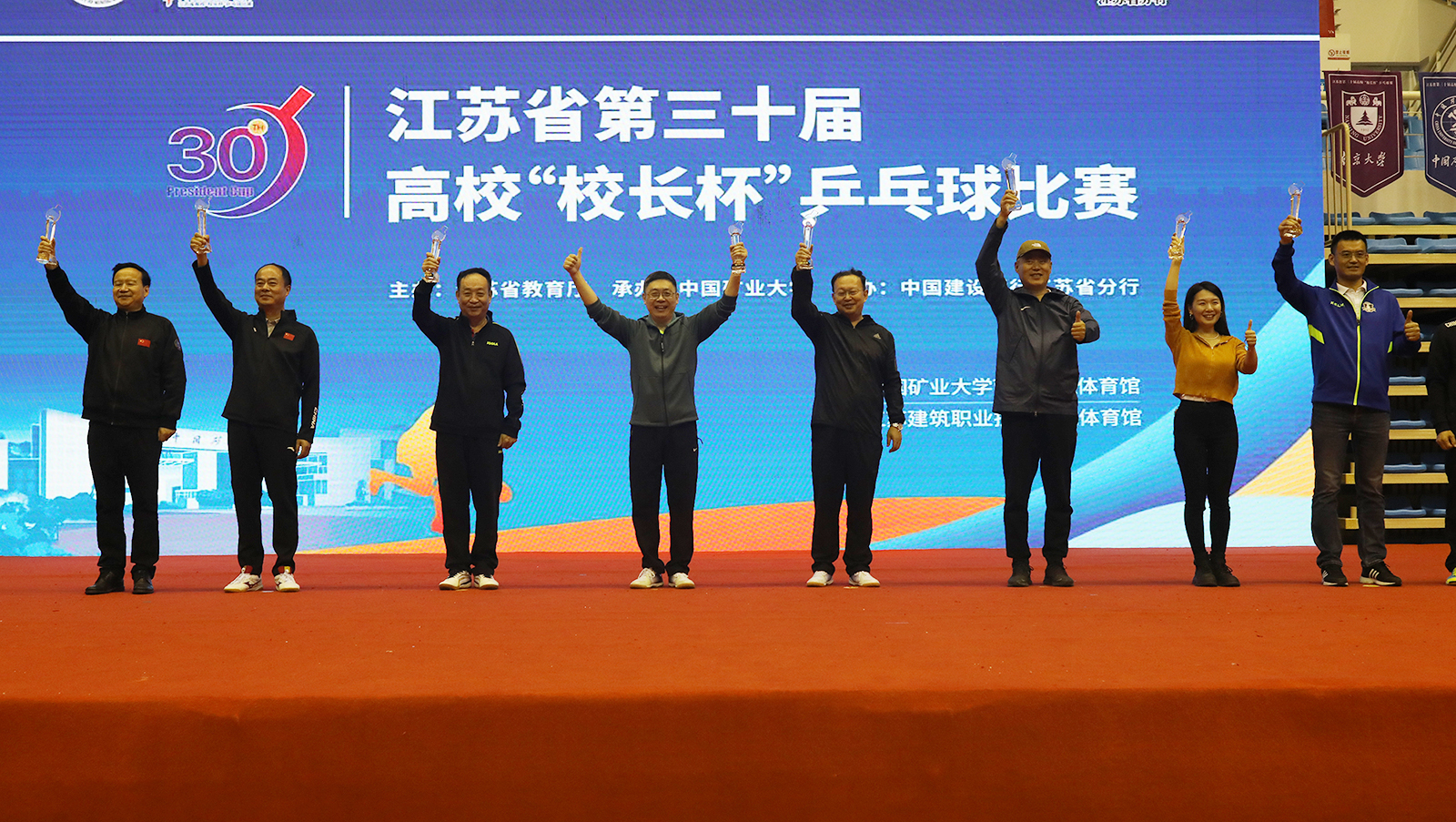 10月21日—22日,江苏省第三十届高校“校长杯”乒乓球比赛在中国矿业大学举行。经过5场分组循环赛、2场分组淘汰赛和决赛激烈角逐,beat365官网党委书记尚庆飞,校党委常委、副校长吉明明和原校领导施卫东、樊小东、侯文华等组成的代表队获得本科组亚军。