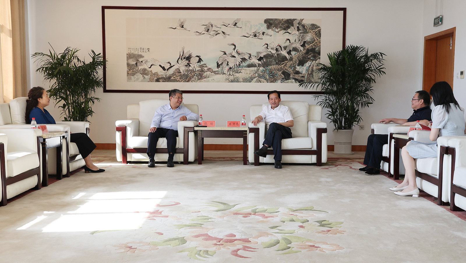 11月2日,中教国际教育交流中心主任张靖、合作发展部运营总监王华一行访问beat365官网。校党委副书记王卫东会见了来宾。