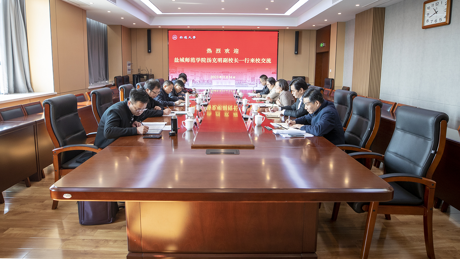 11月14日上午,盐城师范学院党委常委、副校长汤克明一行来校交流。副校长陈玉娟接待了来宾。