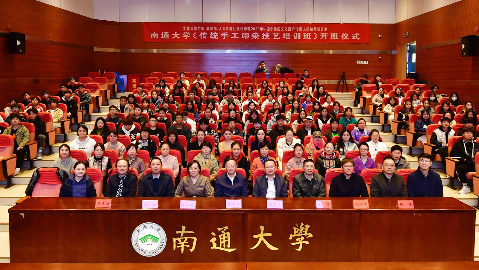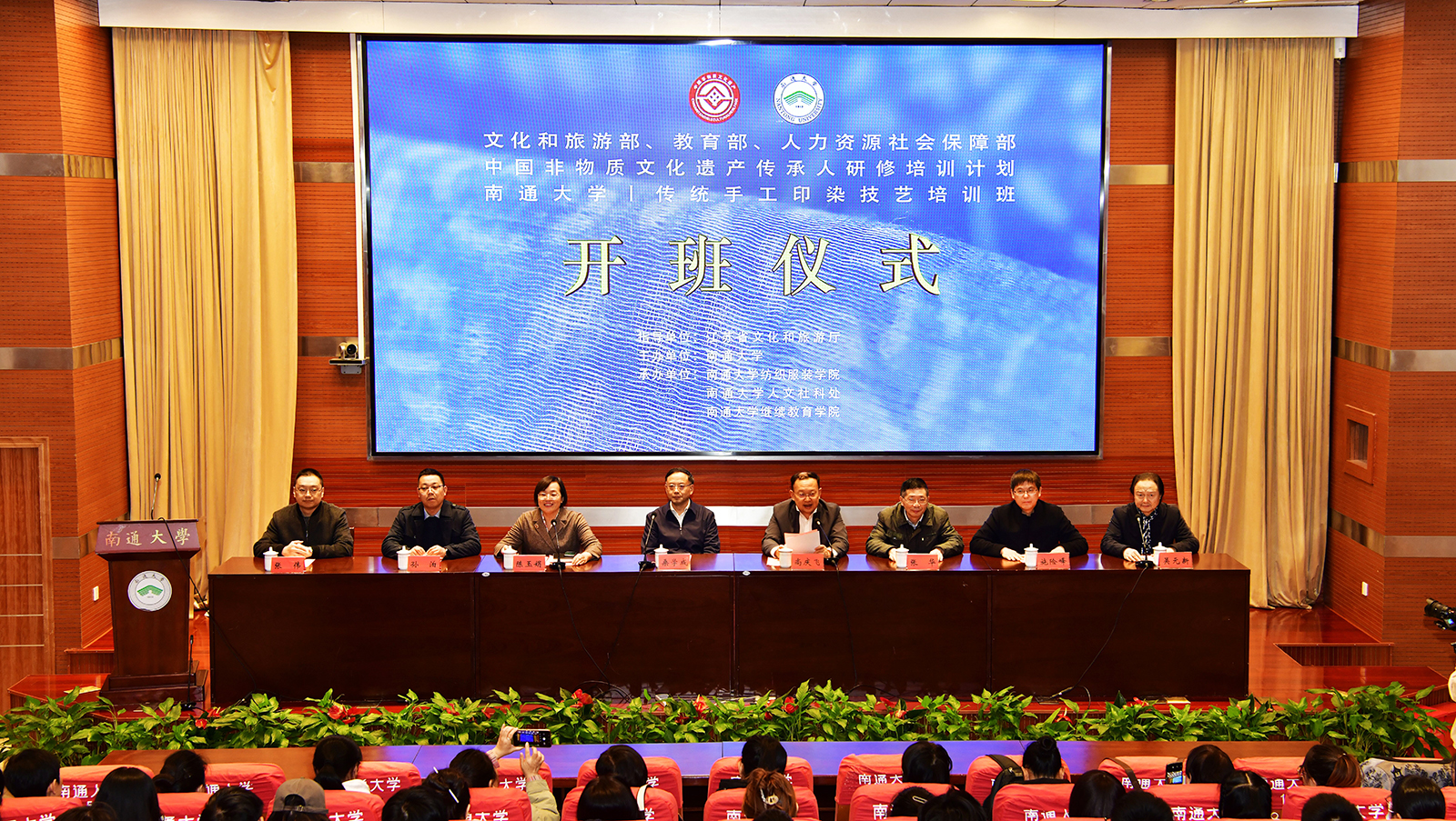 11月14日,2023年中国非物质文化遗产传承人研修培训计划——传统手工印染技艺培训班在beat365官网开班。校党委书记尚庆飞,江苏省委党校原常务副校长、江苏省政府参事、江苏省社科联副主席桑学成出席开班仪式并致辞,校党委副书记、校长杨宇民主持培训班首场学术讲座,副校长陈玉娟主持开班仪式。