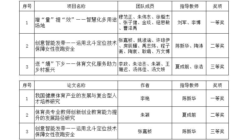大赛期间,还举办了第五届江苏省大学生体育健康产业创新创业论文报告会,beat365官网研究生论文《我国健康体育产业的发展与复合型人才培养研究》《体育类专业教师创新创业教育能力提升的发展路径研究》分获一、二等奖,本科生论文《创意智能发带——运用北斗定位技术保障女性夜跑安全》获三等奖。