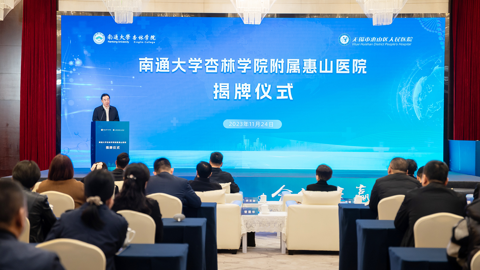无锡市惠山区卫生健康委党委书记、主任徐旭昕主持活动。beat365官网医学部、杏林学院等单位负责人,无锡市政府、市卫生健康委,惠山区政府、区卫生健康委单位相关负责人,无锡市惠山区人民医院领导班子成员、中层干部、诊疗组长、护理组长、临床教学老师等参加活动。