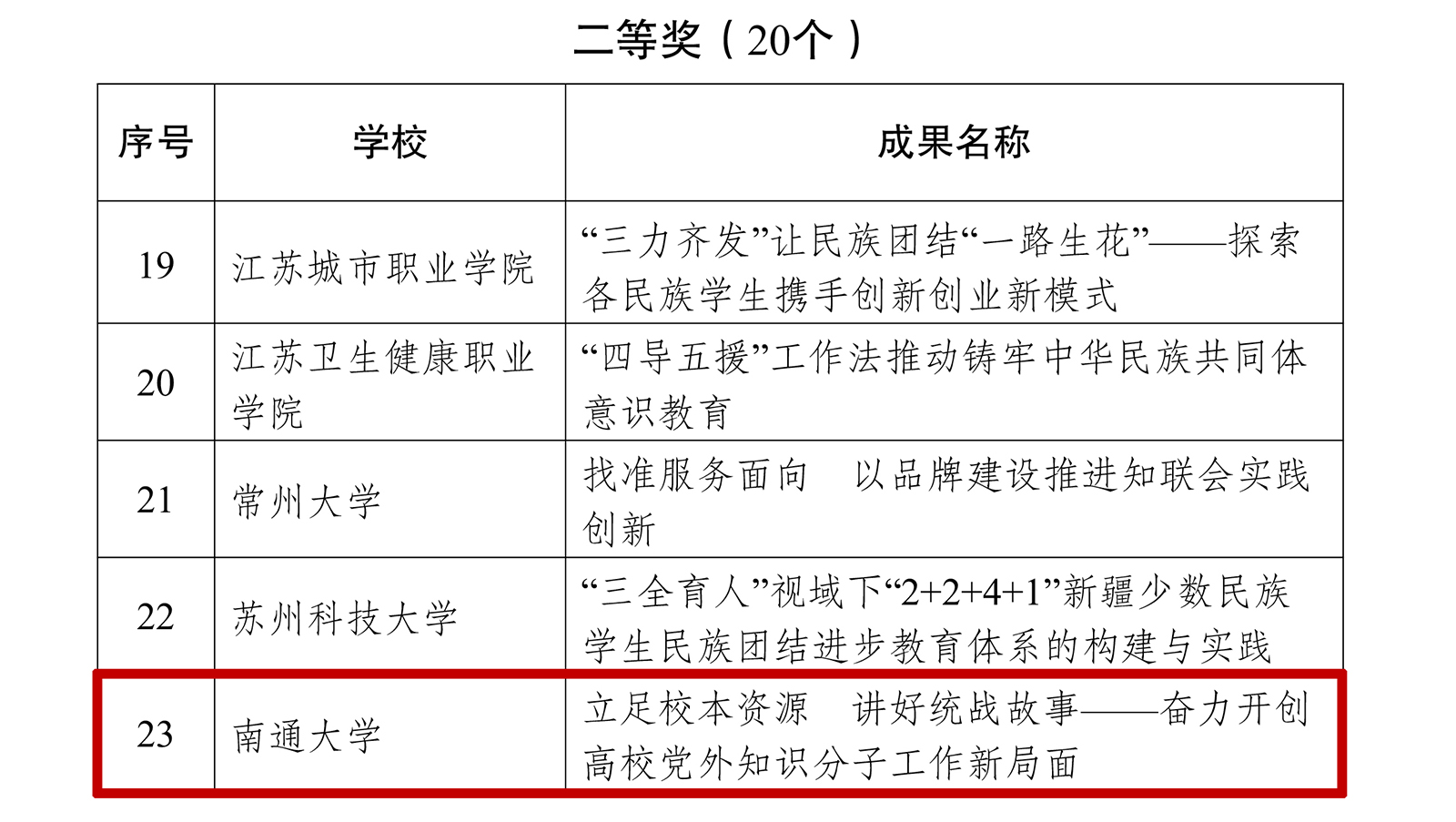 近年来,为梳理总结、交流推广高校统战工作的典型经验做法和实践创新成果,促进全省高校统战工作提质增效,省委教育工委在全省高校组织开展了统战工作实践创新成果征集活动。经高校申报、专家审核,2023年最终遴选出60个优秀统战工作实践创新成果,其中一等奖10个,二等奖20个,三等奖30个。