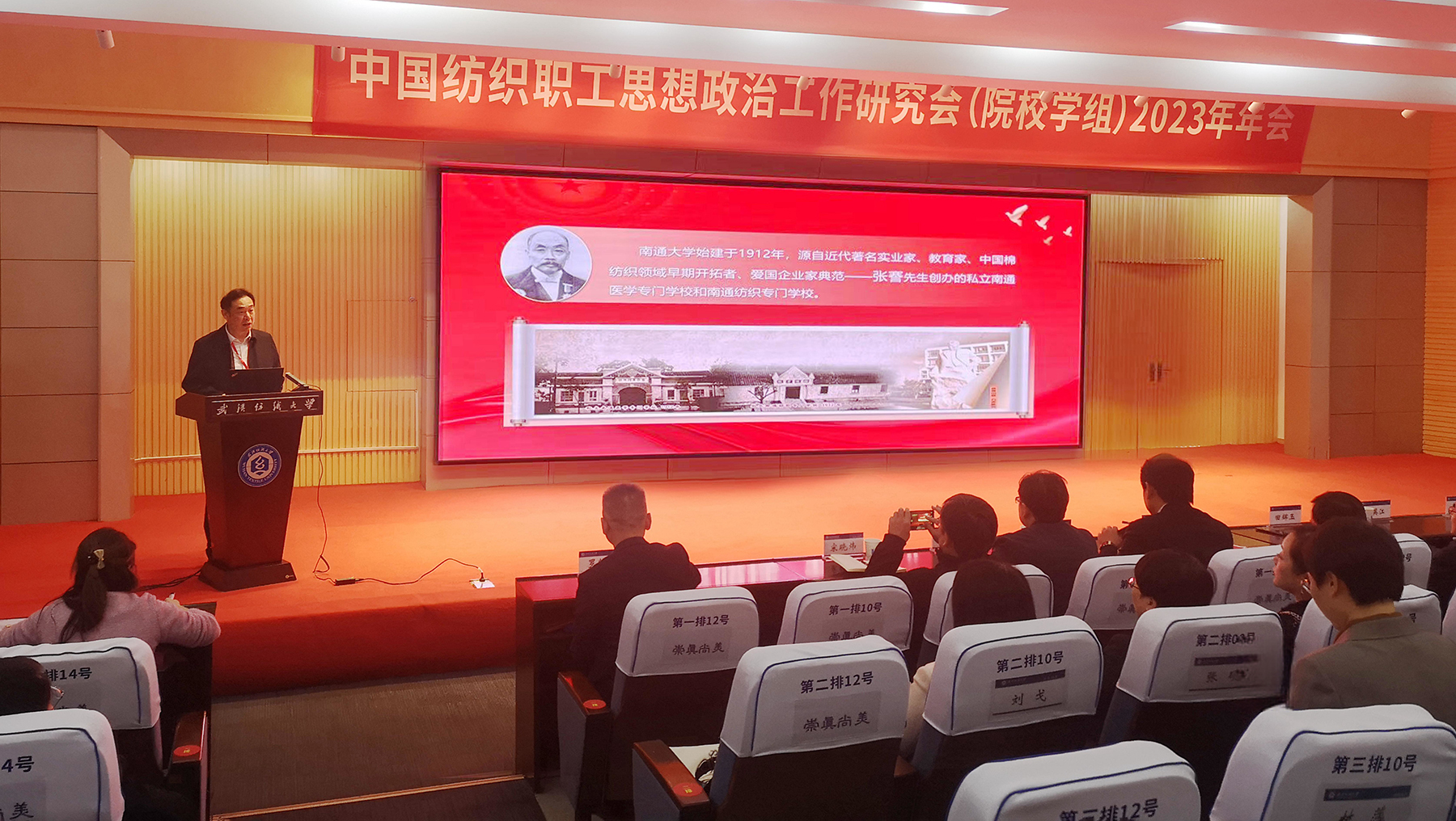 11月23日—25日,中国纺织职工思想政治工作研究会(院校学组)2023年年会在武汉纺织大学举办。来自北京服装学院、东华大学、浙江理工大学等全国16所纺织类高校代表参加年会。校党委常委、副校长吉明明应邀参加会议并做大会交流发言。