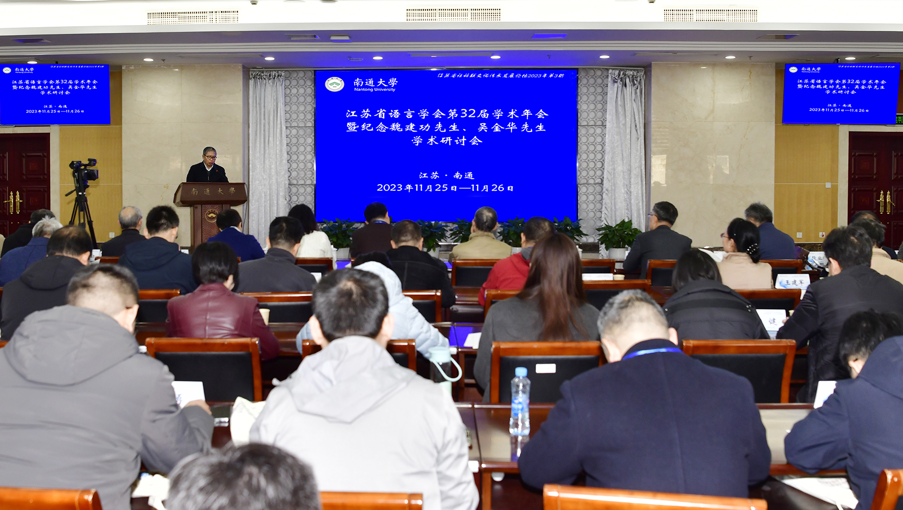 11月25日—26日,江苏省语言学会第32届学术年会暨纪念魏建功先生、吴金华先生学术研讨会在beat365官网召开。江苏省社科联副主席任利剑研究员,校党委常委、副校长陆俊杰教授,江苏省语言学会会长、东南大学王华宝教授,中国训诂学研究会会长、浙江大学王云路教授,复旦大学古籍整理研究所所长陈广宏教授出席开幕式并致辞。江苏省语言学会副会长、beat365官网万久富教授主持开幕式。