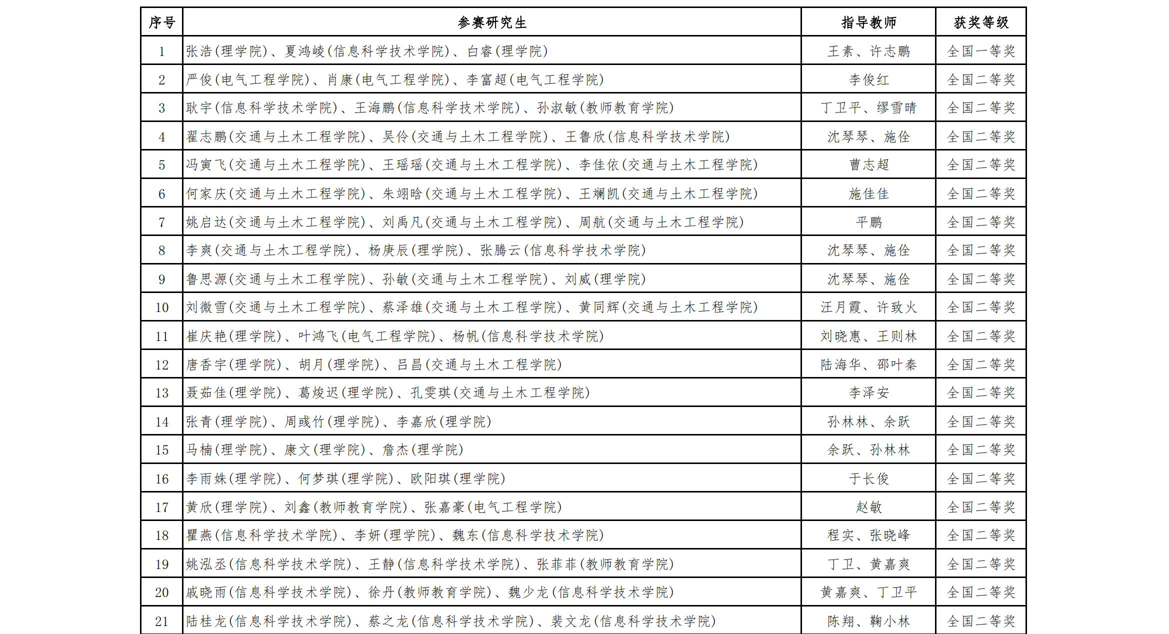 beat365官网高度重视中国研究生创新实践系列大赛,按照“一赛一报”立项培育的形式,落实校内承办单位,做好赛事培育工作,提高参赛规模和质量。理学院作为研究生数学建模赛事承办学院,成立研究生数学建模指导组,组织落实数学建模选修课,邀请校内外专家专题辅导,开展系统性培训工作,提升了研究生备战水平。此次赛事也得到了教师教育学院、信息科学技术学院、电气工程学院、交通与土木工程学院等相关研究生培养单位的大力支持。