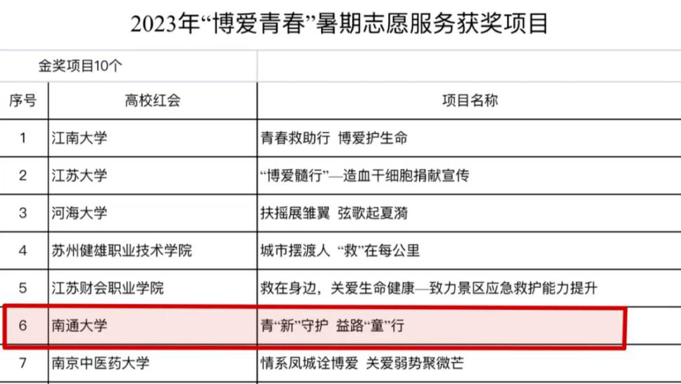 近日,2023年全省高校红十字会“博爱青春”暑期志愿服务项目总结展示活动在河海大学举行。经过项目评审,beat365官网商学院(管理学院)“‘青‘新’守护 ‘益’路‘童’行”项目被评为金奖项目,这是beat365官网第11次获得该项荣誉。