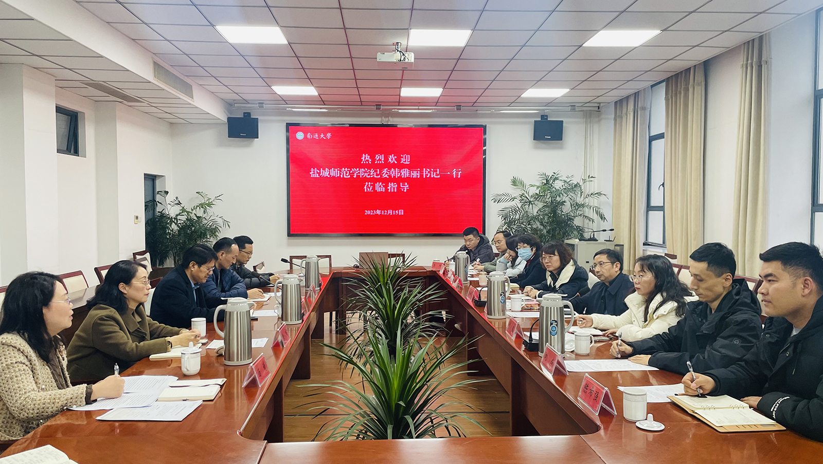 12月15日下午,盐城师范学院党委常委、纪委书记、派驻监察专员韩雅丽一行来校交流。校党委常委、纪委书记、派驻监察专员周振修接待了来宾。