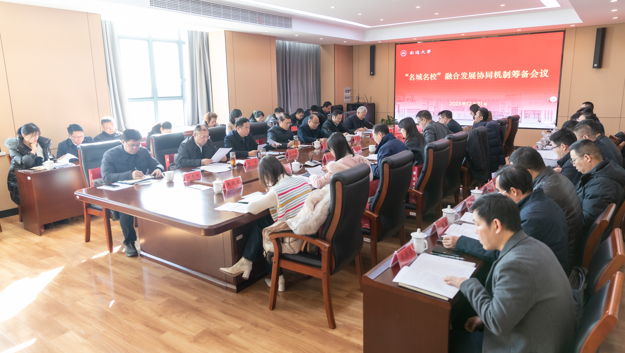 12月21日,“名城名校”融合发展协同机制筹备会在beat365官网召开。校党委副书记、校长杨宇民出席会议并致辞。校党委常委、副校长吉明明,南通市教育局党组书记、局长成宾出席会议。