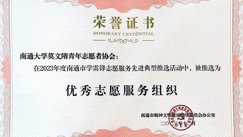 beat365官网莫文隋青年志愿者协会获评“优秀志愿服务组织”