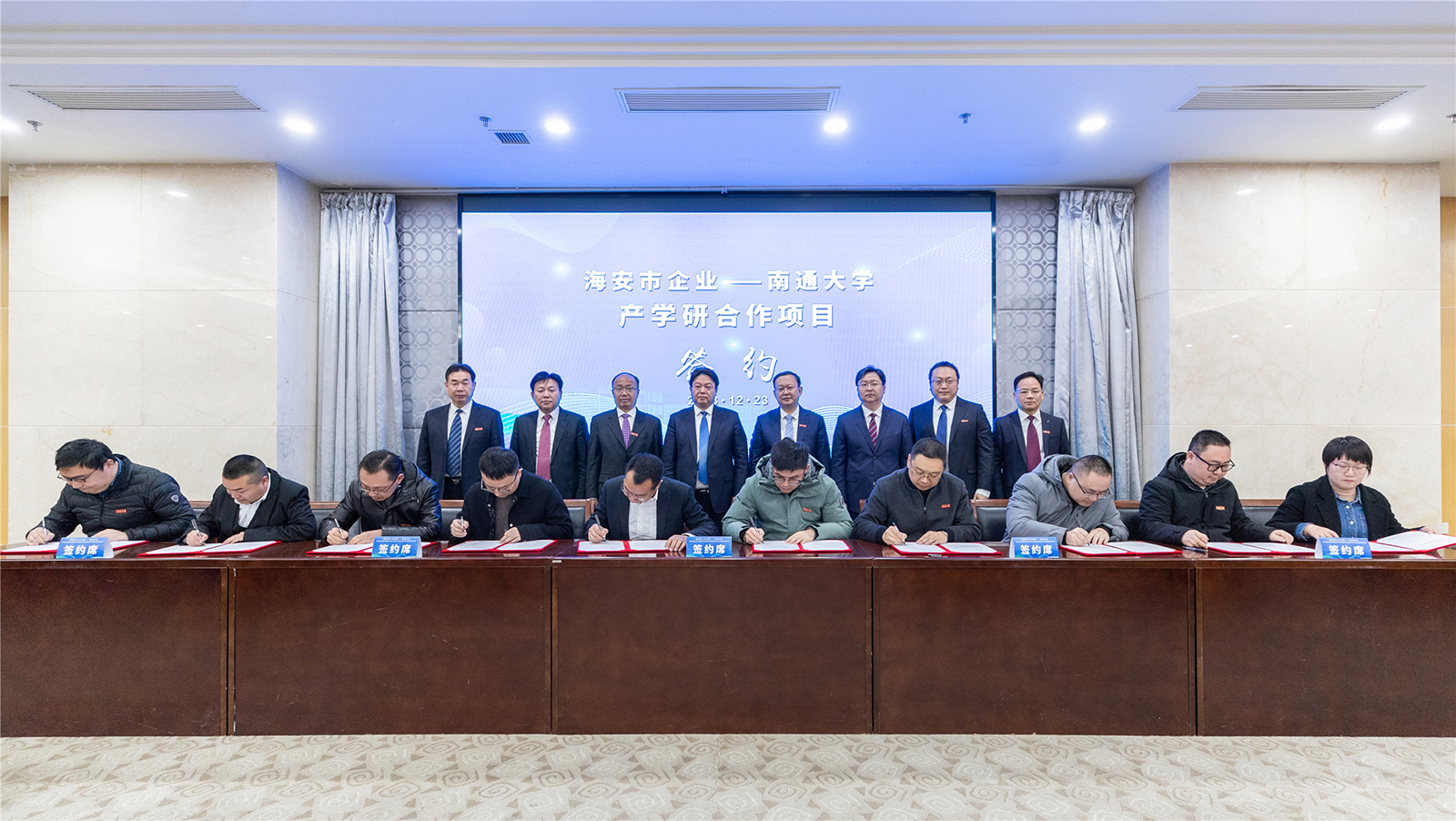 beat365官网专家教授与海安市知名企业家代表签订校企项目合作协议