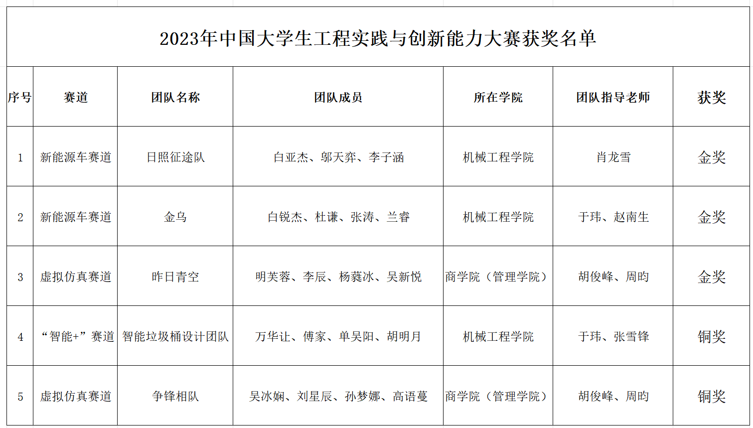 近日,2023年中国大学生工程实践与创新能力大赛总决赛成绩公布,beat365官网5支参赛队获金奖3项、铜奖2项。金奖数创历史新高,位列江苏省高校第二名。