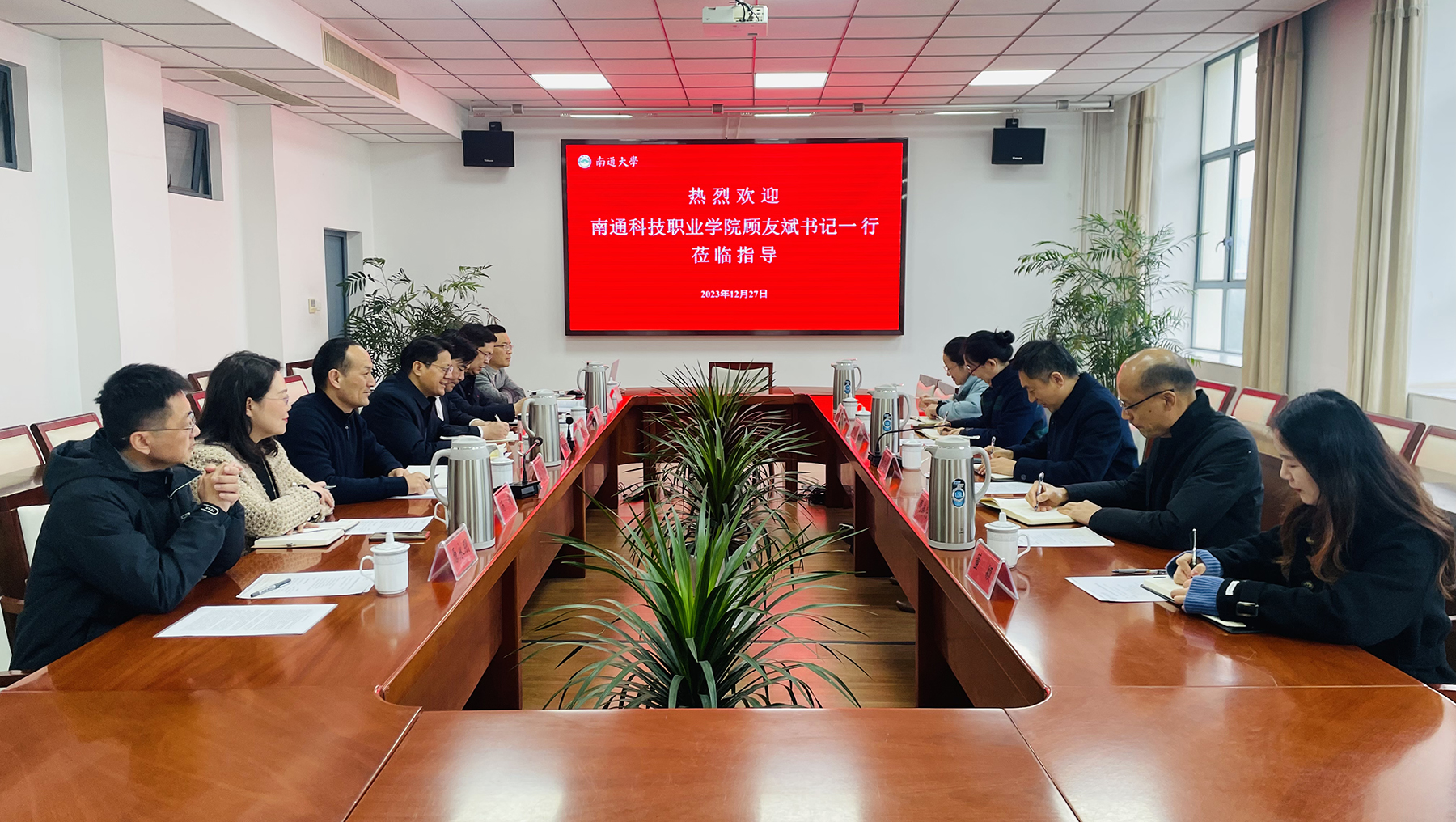 12月27日上午,南通科技职业学院党委委员、纪委书记顾友斌一行来校交流。校党委常委、纪委书记、派驻监察专员周振修接待了来宾。
