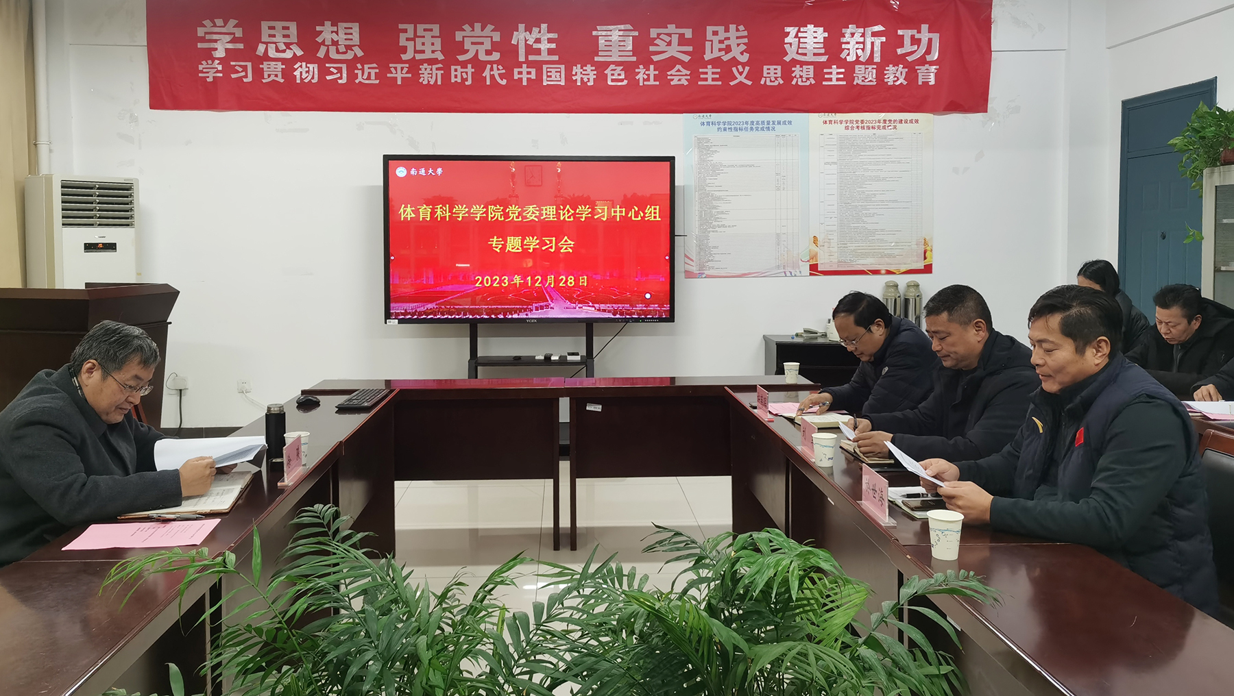 12月28日下午,体育科学学院党委召开理论学习中心组学习会,专题学习习近平总书记在纪念毛泽东诞辰130周年座谈会上的重要讲话。校党委常委、副校长徐骏进行巡学旁听。