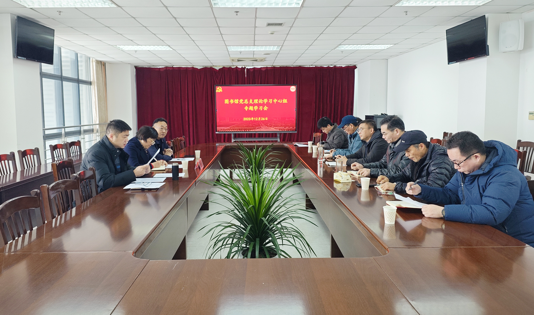 图书馆党总支理论学习中心组全体成员参加会议。
