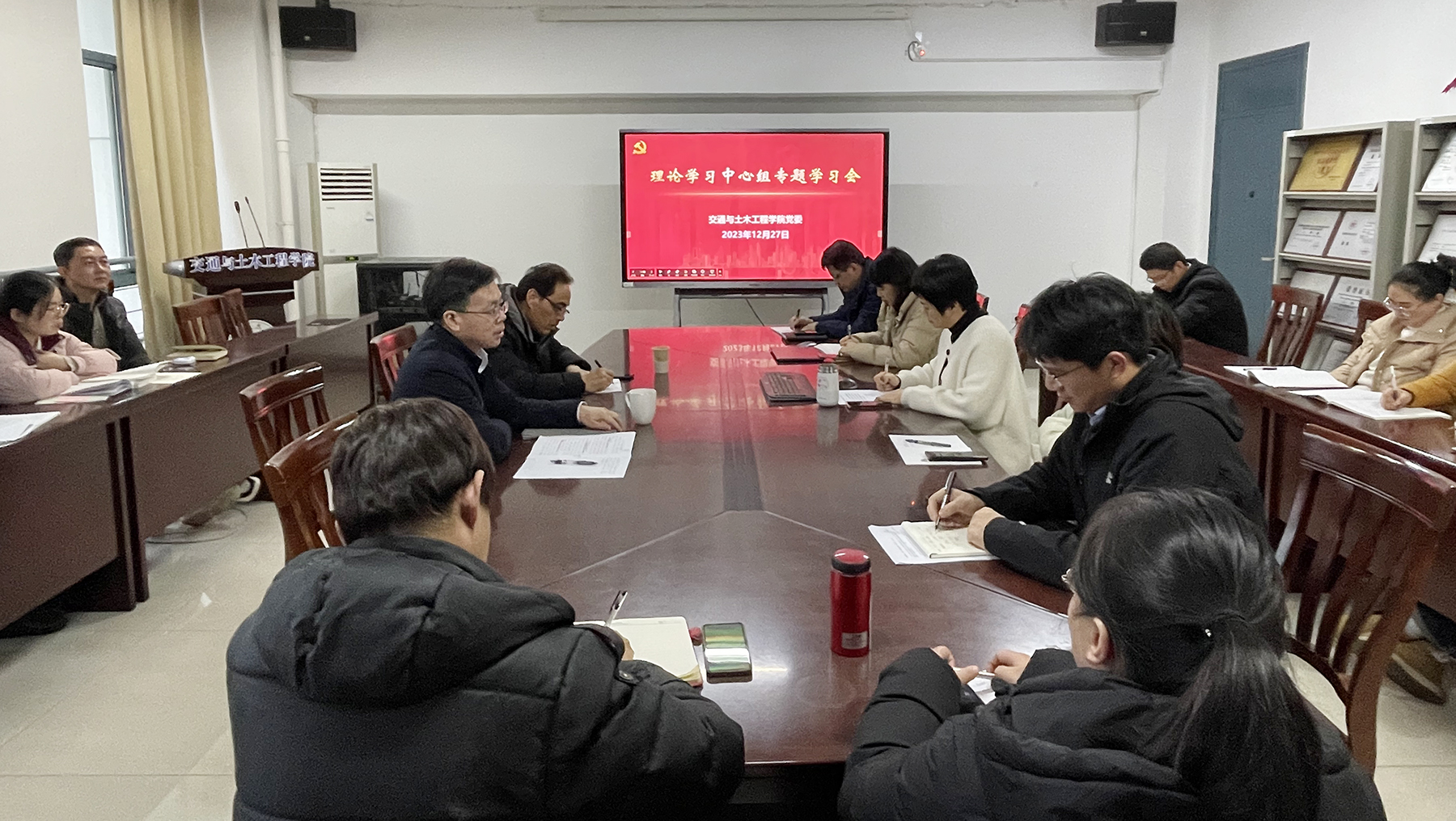 12月28日下午,交通与土木工程学院党委召开理论学习中心组学习会,专题学习习近平总书记在中共中央政治局集中学习和主题教育民主生活会上的重要讲话精神。校党委常委、副校长施佺进行巡学旁听。