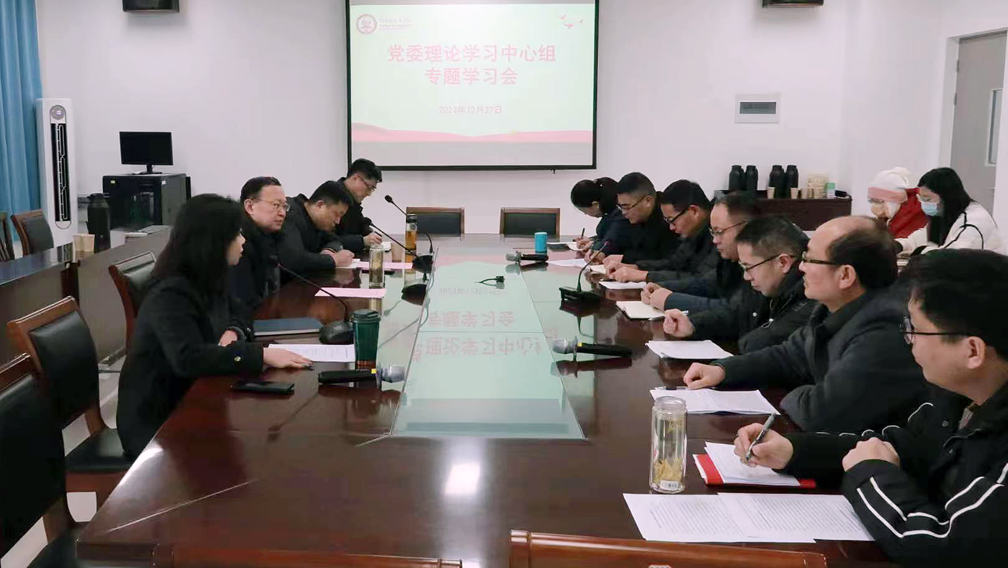 12月27日上午,马克思主义学院党委召开理论学习中心组专题学习会,学习《求是》杂志发表的习近平总书记重要文章《开辟马克思主义中国化时代化新境界》。校党委书记尚庆飞进行巡学旁听。