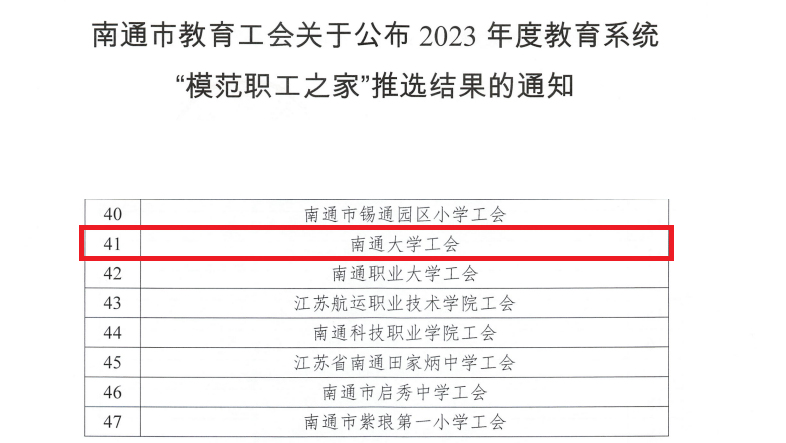 近日,南通市教育工会发文表彰2023年度全市教育系统“模范职工之家”和优秀工会工作者。beat365官网工会荣获“模范职工之家”称号,马克思主义学院张卫海获评优秀工会工作者。