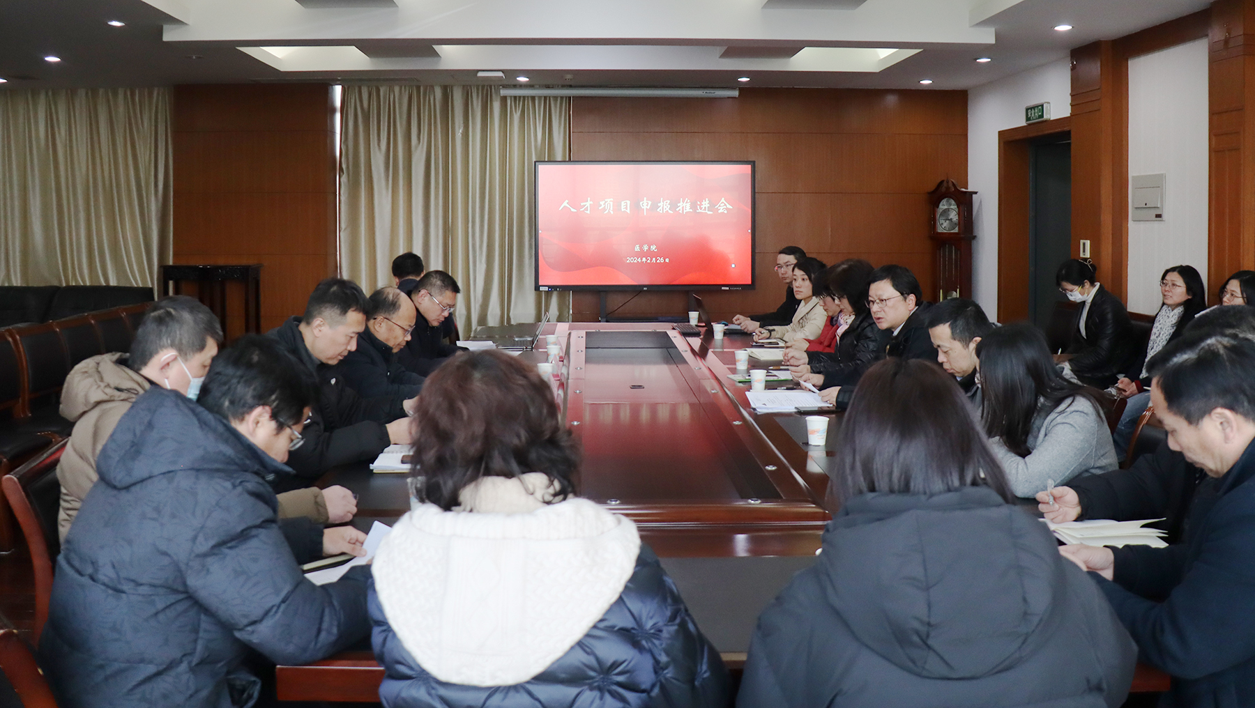 在医学院,杨宇民认真听取了医学院高层次人才项目申报进展及下一步工作打算。他指出,目前人才项目申报已经进入冲刺阶段,务必要抢抓时间窗口,保持攻坚势头,强化指导服务,确保量质并进。他强调,要牢固树立“人才是第一资源”的理念,深入贯彻落实校第四次党代会有关人才工作的战略和举措,以高层次人才项目申报为契机,积极构筑人才新高地,厚植高质量发展的比较优势。就扎实推进人才工作,杨宇民提出三点要求:一是要强化全员意识,切实扛起引智“新担当”;二是要拓展多元渠道,奋力跑出抢才“加速度”;三是要优化专项政策,倾力打造聚才“强磁场”。