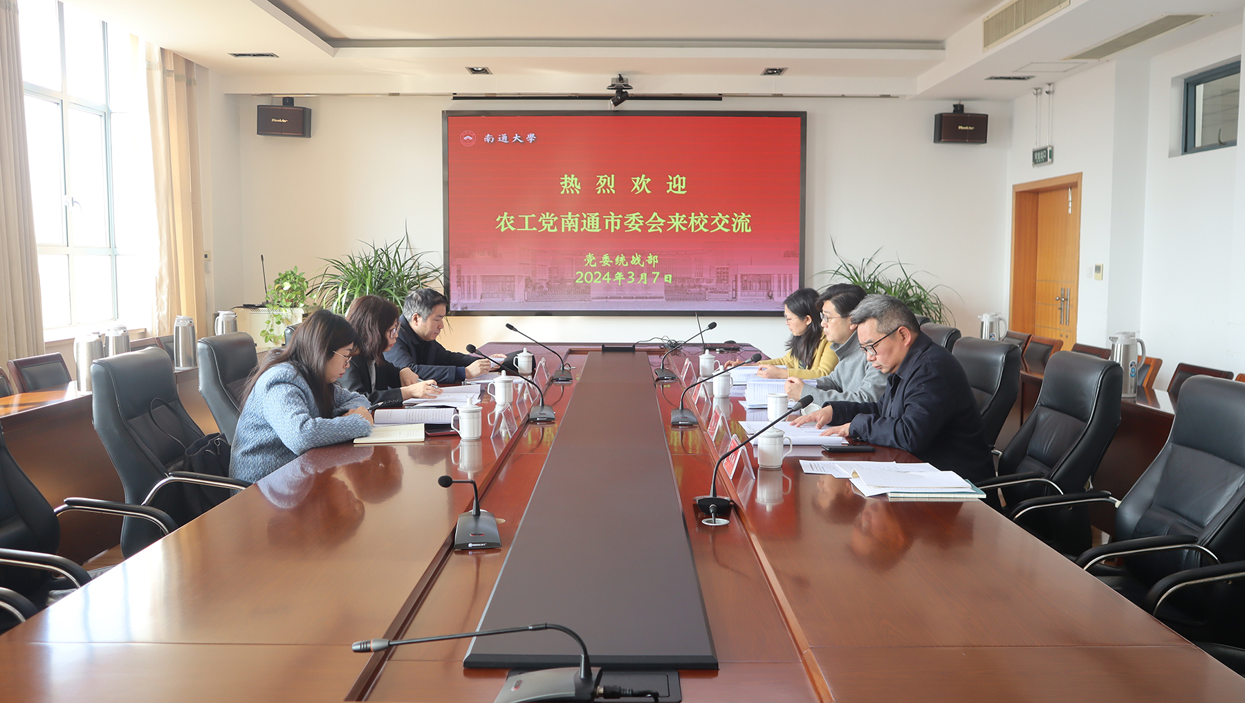 3月7日上午,农工党南通市委会专职驻会副主委兼秘书长吴琳一行来校交流。校党委常委、统战部部长朱城接待了来宾。