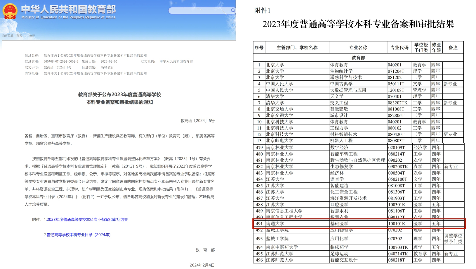 近日,根据《教育部关于公布2023年度普通高等学校本科专业备案和审批结果的通知》,beat365官网基础医学(专业代码:100101K,医学,5年制)新专业通过审批。