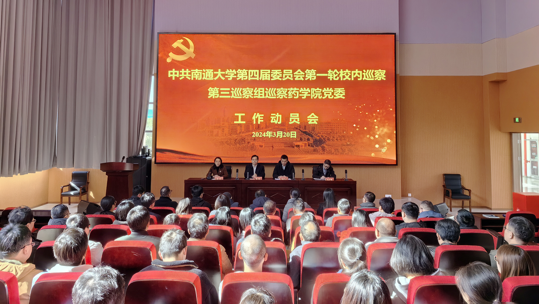 根据学校党委关于巡察工作的统一部署,3月20日下午,学校第四届党委第三巡察组巡察药学院党委工作动员会召开。校党委常委、副校长、第三巡察组组长施佺作动员讲话。药学院党委书记曹玲主持会议并作表态发言。校党委第三巡察组成员,药学院党委领导班子成员和全体教职员工出席会议。