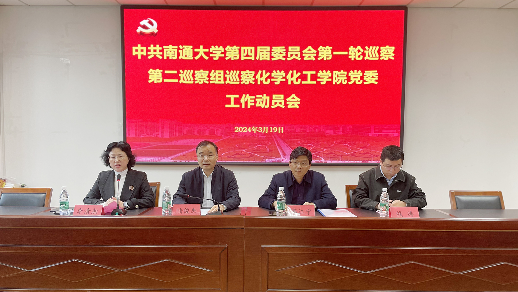 根据学校党委关于巡察工作的统一部署,3月19日上午,学校第四届党委第二巡察组巡察化学化工学院党委工作动员会召开。校党委常委、副校长、第二巡察组组长陆俊杰作动员讲话。化学化工学院党委书记李清湘主持会议并作表态发言。校党委第二巡察组成员,化学化工学院党委领导班子成员和全体教职工出席会议。
