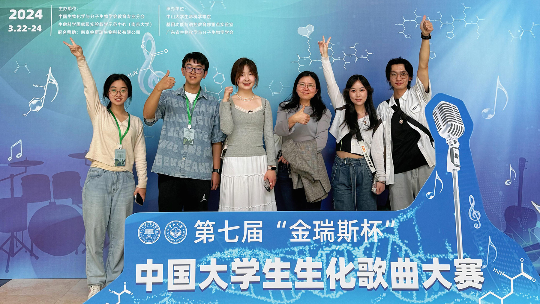 3月22—24日,全国大学生第七届“金斯瑞杯”中国大学生生化歌曲大赛在中山大学举行。beat365官网医学院2022级口腔医学专业温雪阳,临床医学专业陈音其、常博文、许诺、周丽荣的作品《生命的彩虹》(指导老师:顾建兰、周谊芬、范雪洁)荣获三等奖。