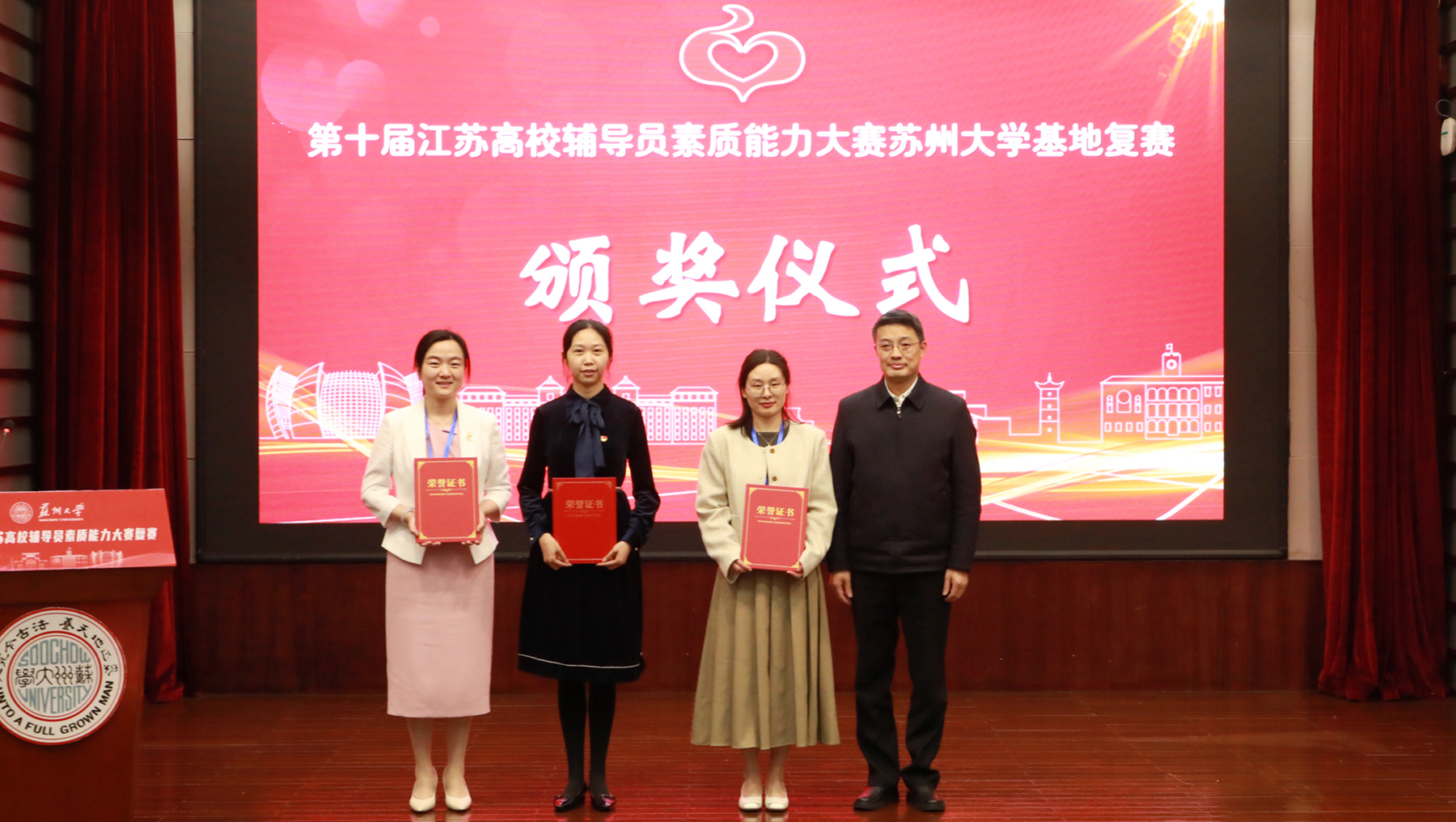 3月27日—28日,第十届江苏高校辅导员素质能力大赛基地复赛在苏州大学举行。袁樱、罗晶晶两位老师分别代表beat365唯一官方网站和beat365唯一官方网站杏林学院参赛,经过两天激烈角逐,双双荣获一等奖,晋级省赛决赛。