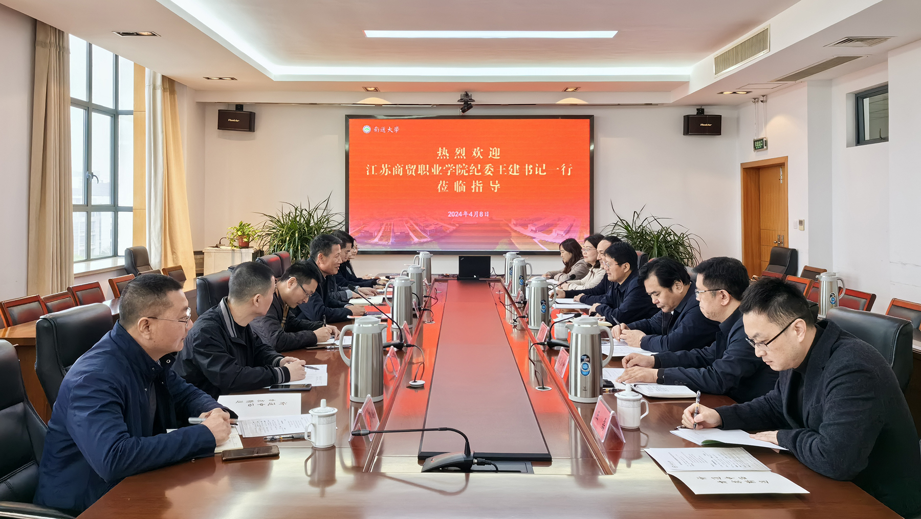 4月8日上午,江苏商贸职业学院党委委员、纪委书记、派驻监察专员王建一行来校交流。校党委常委、纪委书记、派驻监察专员周振修接待了来宾。