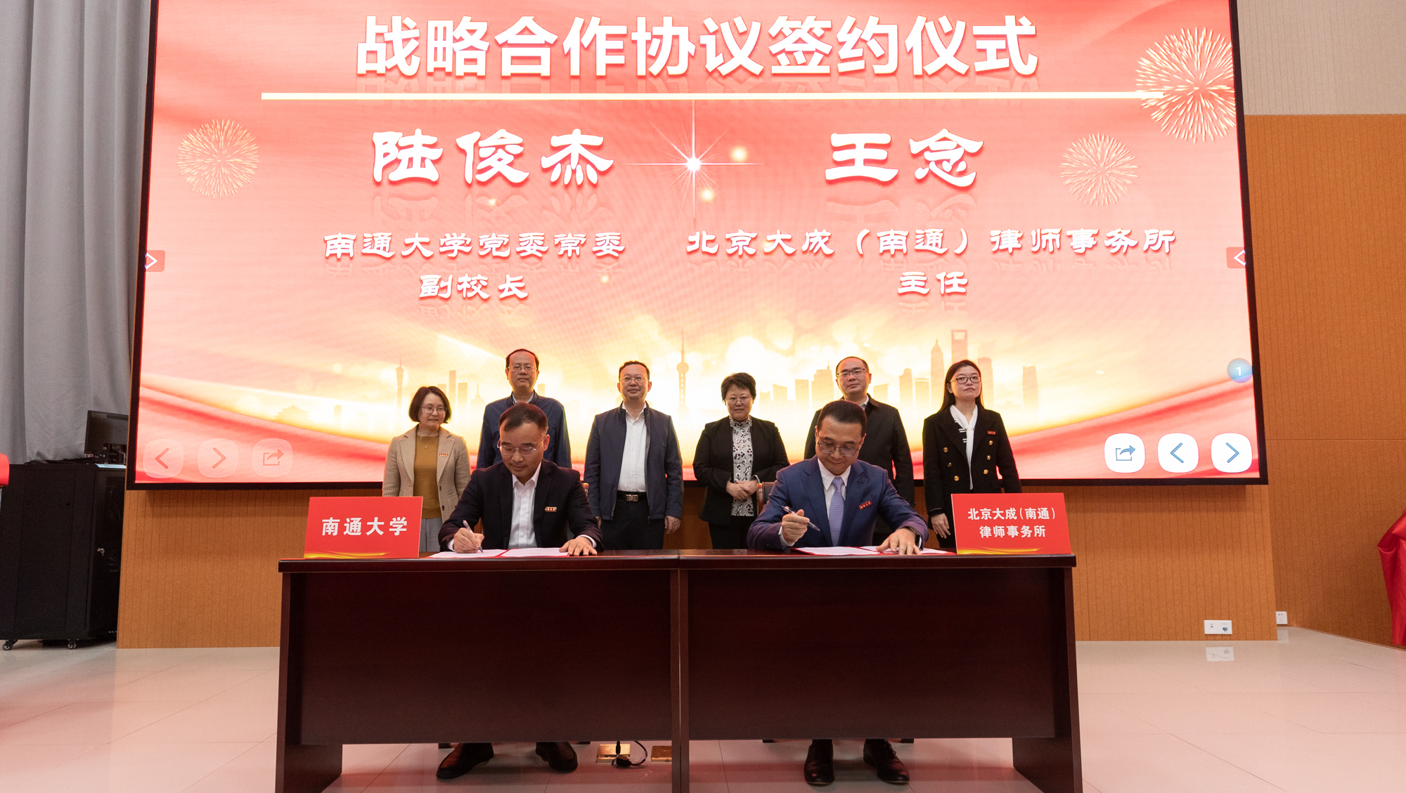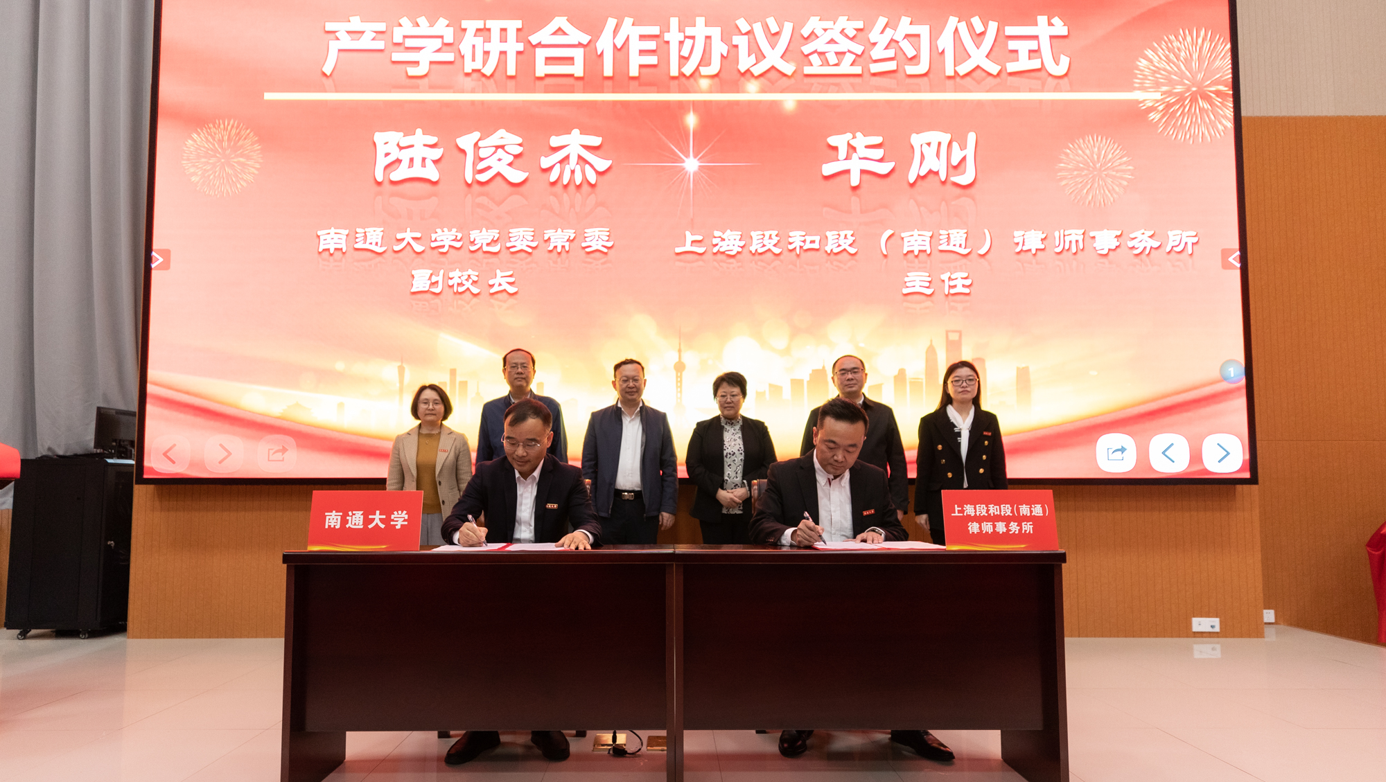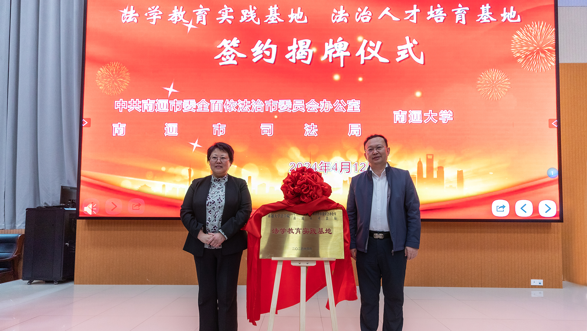 4月12日上午,beat365官网与南通市委依法治市办、南通市司法局举行共建合作基地签约揭牌仪式。校党委书记尚庆飞,江苏省司法厅党委委员、省委全面依法治省委员会办公室副主任范沁芳共同为“法学教育实践基地”“法治人才培育基地”揭牌。校党委常委、副校长陆俊杰与南通市司法局党组书记、局长、南通市委依法治市办副主任朱志强,北京大成(南通)律师事务所主任王念,上海段和段(南通)律师事务所主任华刚签订共建合作协议。