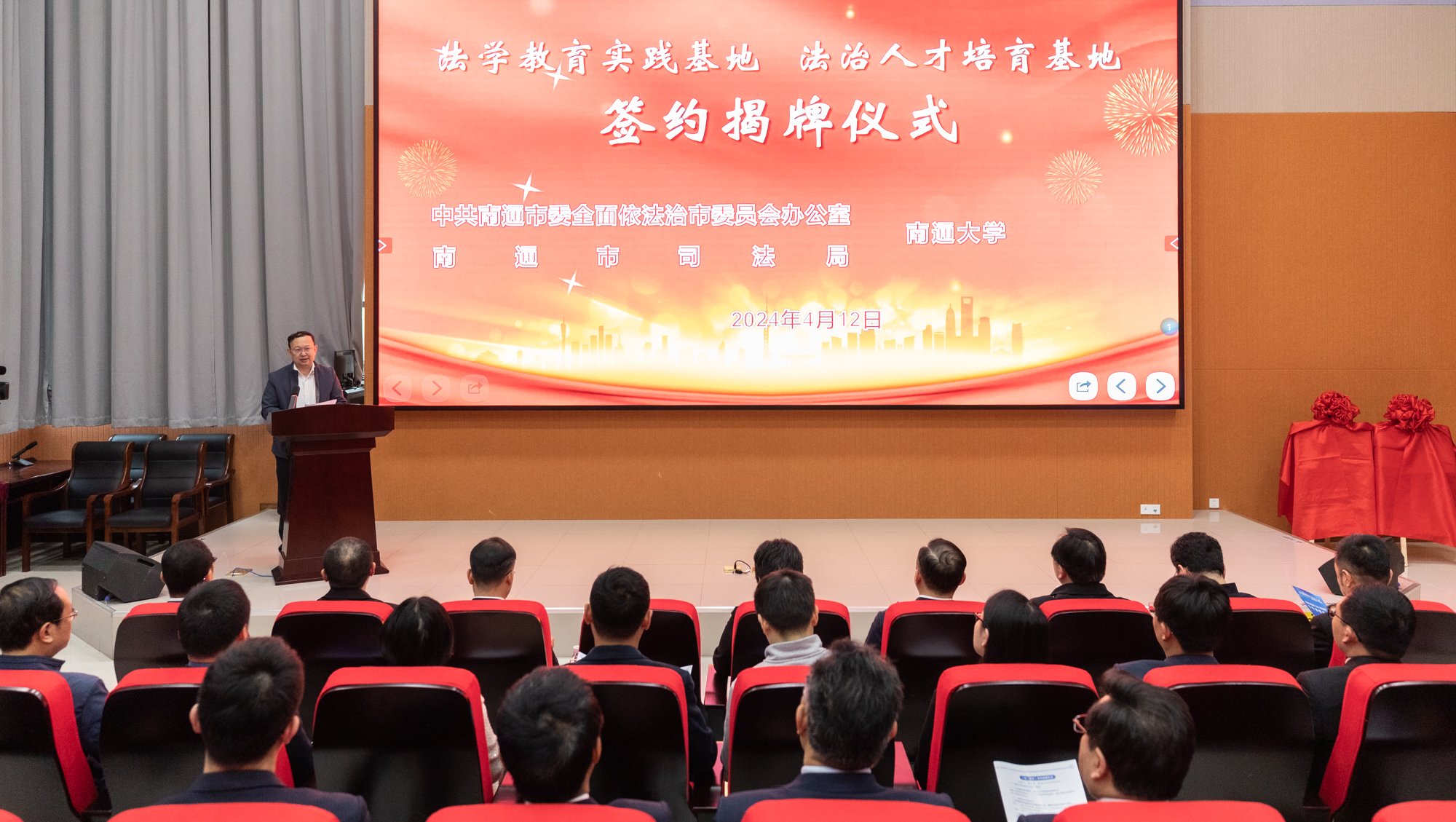 尚庆飞代表学校向与会领导和来宾表示诚挚欢迎和衷心感谢。他指出,beat365唯一官方网站长期以来与南通市委依法治市办、南通市司法局有着良好的合作基础,此次共建法学教育实践基地和法治人才培育基地,必将有效推动双方在依法治市理论研究、司法实践和法治人才培养等方面实现深度融合,加快形成校地合作、共促法治建设的良好局面。他希望,法学院不断完善法学教育体系,在把牢政治方向、创新培养模式、健全课程体系、强化实践环节等方面发力用劲,努力培养更多高素质法治人才,为在法治轨道上全面推进中国式现代化南通新实践提供更有力的人才支撑和智力保障。