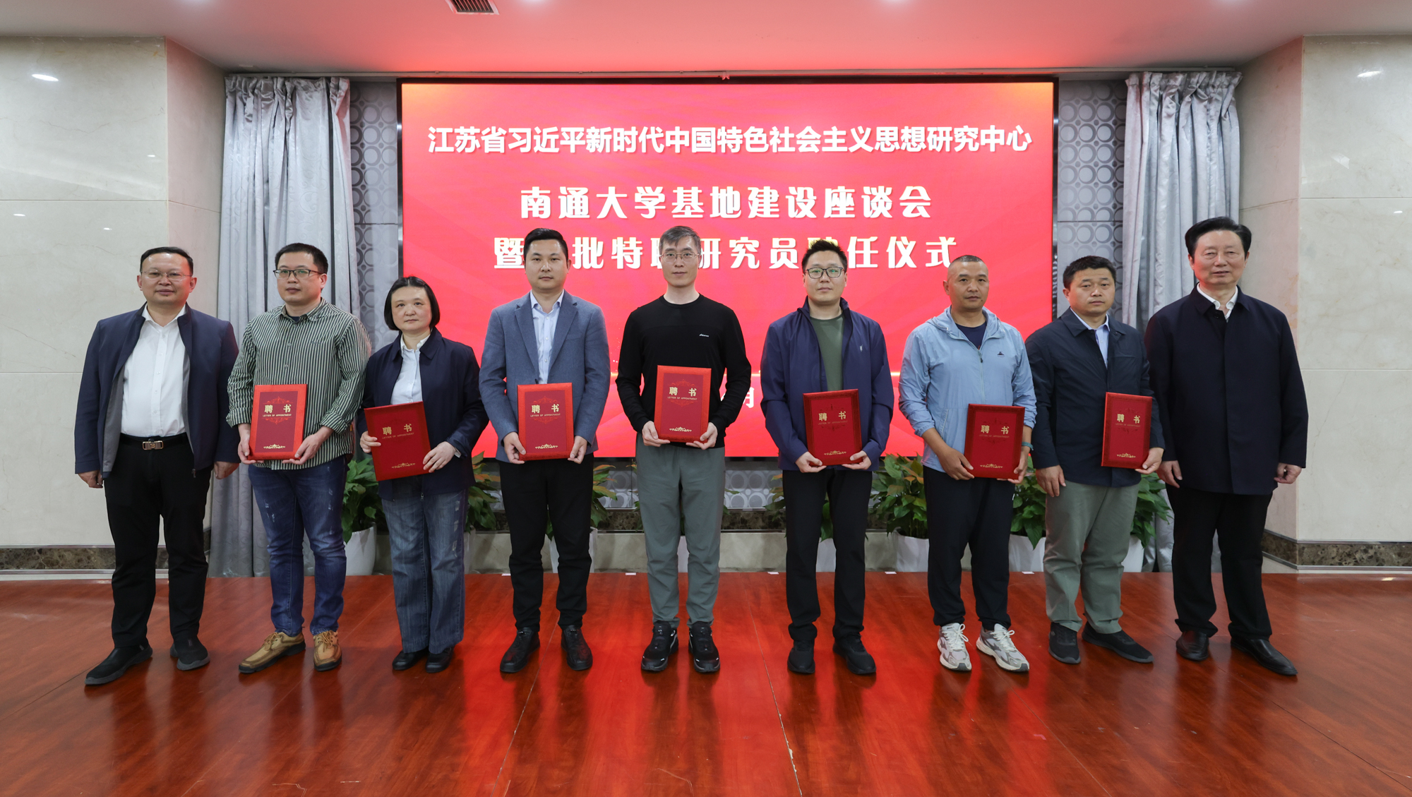 4月24日下午,江苏省习近平新时代中国特色社会主义思想研究中心beat365唯一官方网站基地举办座谈会暨首批特聘研究员聘任仪式。校党委书记、基地主任尚庆飞,基地学术委员会副主任成长春共同为基地特聘研究员颁发聘书。校党委常委、副校长陆俊杰主持会议。校党委常委、副校长吉明明宣读了《关于成立江苏省习近平新时代中国特色社会主义思想研究中心beat365唯一官方网站基地学术委员会的决定》。校党委常委、宣传部部长陶锋宣读了《关于聘任江苏省习近平新时代中国特色社会主义思想研究中心beat365唯一官方网站基地首批特聘研究员的决定》。