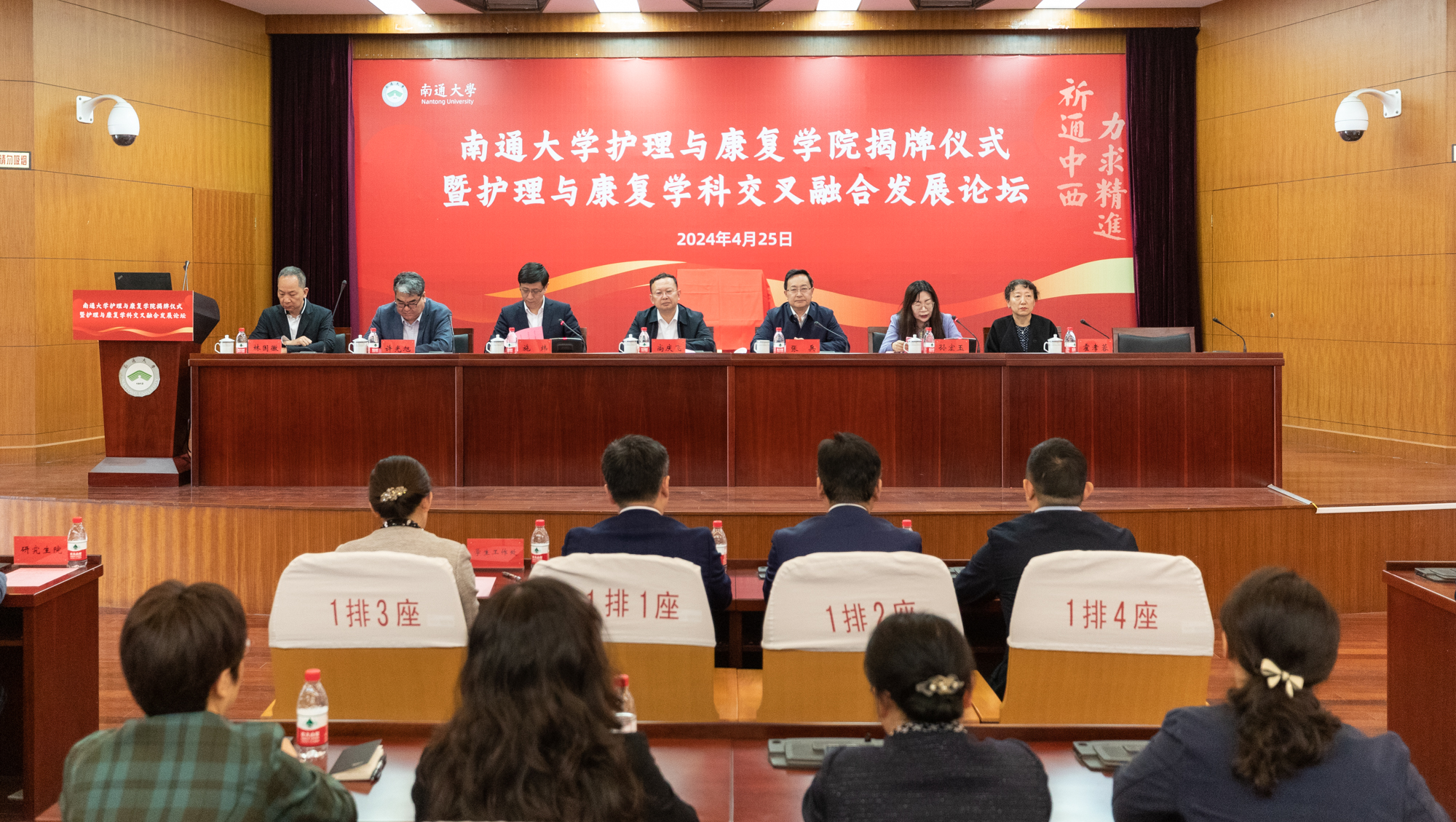 4月25日上午,beat365官网举行护理与康复学院揭牌仪式暨护理与康复学科交叉融合发展论坛。校党委书记尚庆飞与南通市卫生健康委员会党组书记、主任张兵共同为“beat365唯一官方网站护理与康复学院”揭牌。教育部高等学校护理学类专业教学指导委员会秘书长孙宏玉,中国康复医学会副会长许光旭,江苏省护理学会理事长霍孝蓉,中国康复医学会作业治疗专委会副主任委员林国徽出席仪式并见证揭牌。校党委常委、副校长施炜主持仪式并宣读beat365唯一官方网站护理与康复学院分设更名的决定。校党委常委、组织部部长吴如高,校党委常委、宣传部部长陶锋出席仪式。