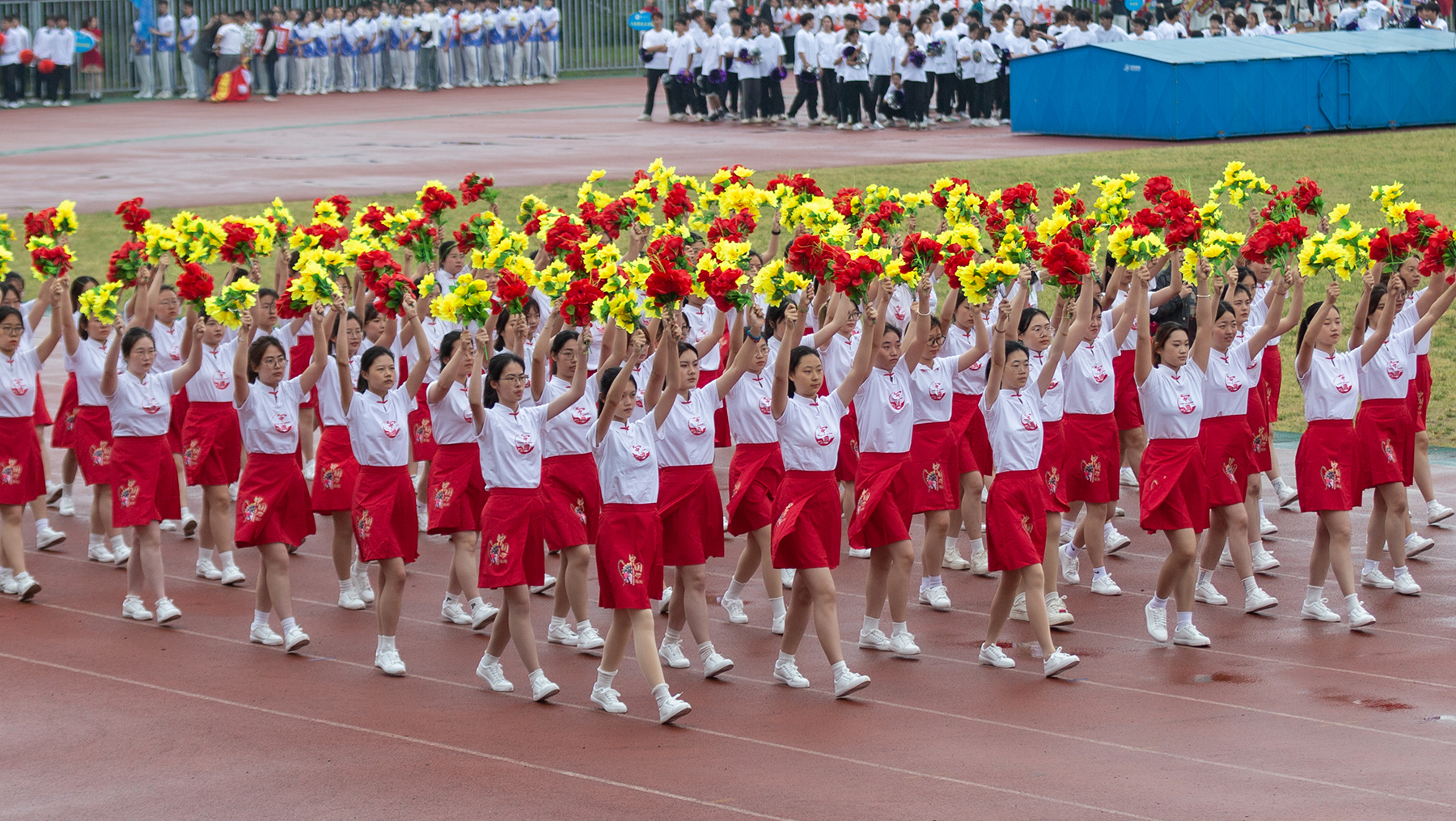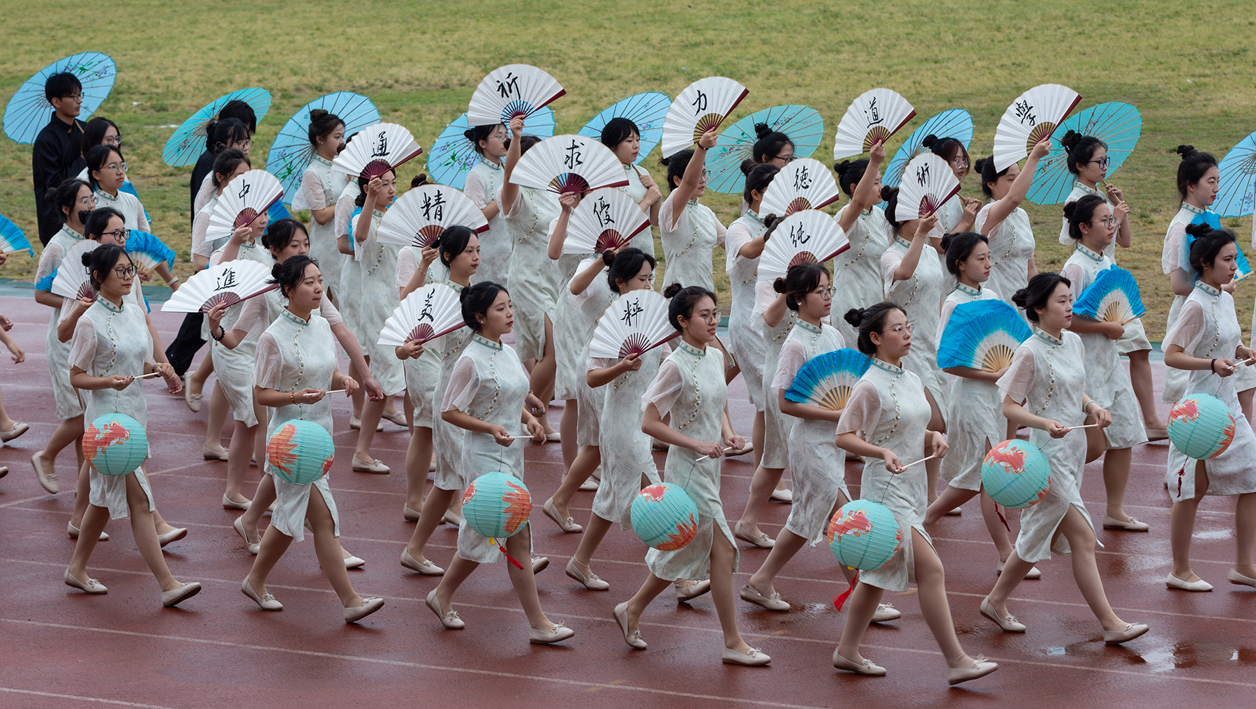 开幕式上,体育科学学院盛张群老师、艺术学院万哲宇同学分别代表裁判员、运动员进行宣誓。激情澎湃的文体表演将运动会开幕式推向高潮。由校排舞队、“逐梦追光”排舞社团及啬园校区排舞公体课的102名同学带来的排舞串烧表演《天使的翅膀》《欢乐火把节》,用热烈整齐的舞姿逐梦追光。啦啦操队员踏着轻快的节拍欢乐舞动,充分展现青春活力和激情。公共体育课项目的集中展示,将瑜伽、木兰扇、太极拳、篮球、羽毛球、排球、击剑和足球的运动之美尽情彰显。踩着铿锵有力、热闹欢腾的锣鼓乐,体育科学学院的舞龙舞狮表演时而翻滚跳跃,时而蹁跹起舞,将体育运动的速度与激情淋漓展现。