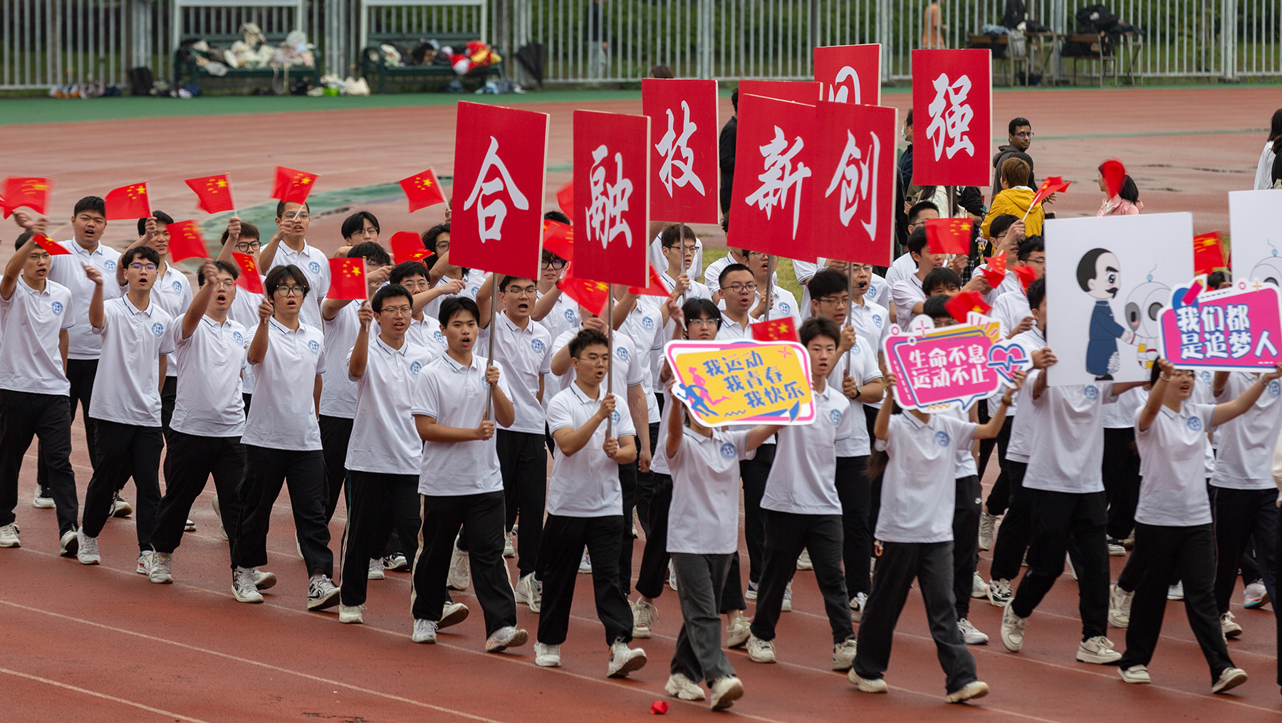 上午8点,各学院运动员方阵伴着《运动员进行曲》,迈着矫健步伐走过主席台。飘扬的彩旗、整齐的步调、洪亮的口号交织在一起,尽显通大学子朝气蓬勃的青春底色。