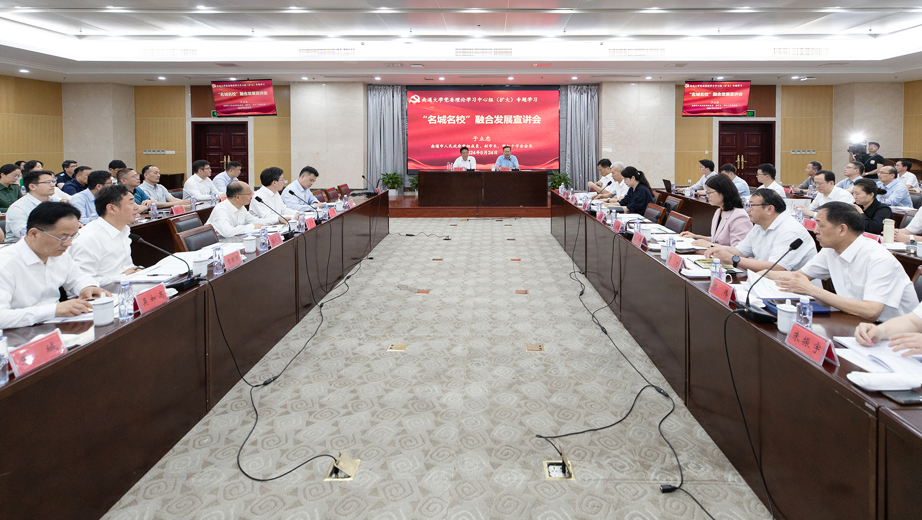 为深入推动“名城名校”融合发展,使全校师生更加全面了解南通经济社会发展情况,深刻把握推进“名城名校”融合发展的战略部署和具体要求。5月24日,beat365官网举行“名城名校”融合发展宣讲会暨学校党委理论学习中心组(扩大)专题学习会。南通市副市长于立忠来校作专题报告。校党委书记尚庆飞主持会议。全体在通校领导、党委常委出席会议。