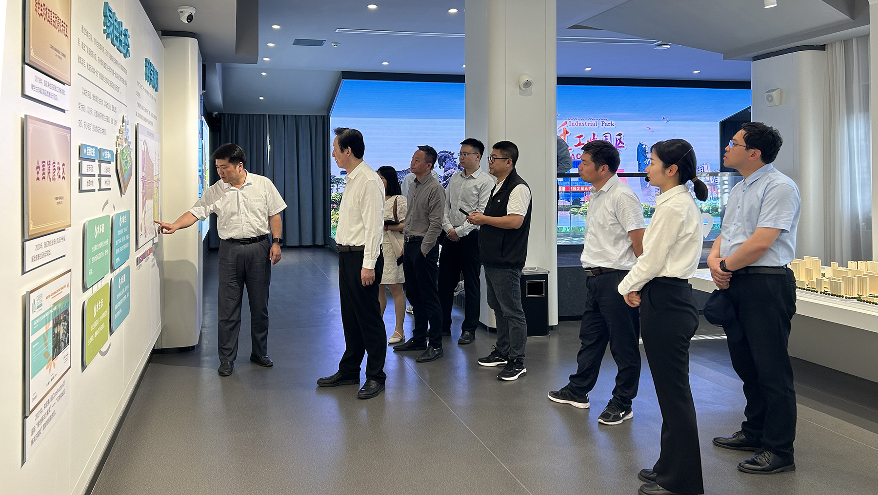此次调研,课题组在前期调研扬子江城市群、沿海经济带的基础上,分别与省发改委、科技厅、工信厅、人社厅、自然资源厅、生态环境厅、住建厅、交通运输厅、农业农村厅、商务厅、沿海开发集团有限公司以及各市发改委、科技局、工信局、交通运输局、自然资源和规划局、住建局、农业农村局等相关职能部门的负责同志进行了座谈,了解“1+3”重点功能区推进现状及各市在推进“1+3”重点功能区的政策规划和实施情况,分别与国家发改委原副秘书长范恒山、江苏省委原常委、副省长、省政协理论研究会会长徐鸣,省人大常委会原副主任、党组副书记陈震宁,宿迁市委书记陈忠伟,徐州市委副书记、市长王剑锋,省发改委党组成员、副主任林康,省战略与发展研究中心党委书记、主任孙志高,省社科联党组成员、副主席刘西忠,中国科学院南京地理与湖泊研究所区域人文经济地理研究室主任陈雯,南京大学空间规划研究中心主任张京祥等领导和专家就“1+3”重点功能区战略如何在“+”号上要做好文章进行了深入交流,并实地考察了徐州市规划馆、铁路集散中心、万科智慧冷链物流基地、数字贸易产业园、淮海国际陆港供应链服务中心、宿迁城市展览馆、苏宿工业园区。