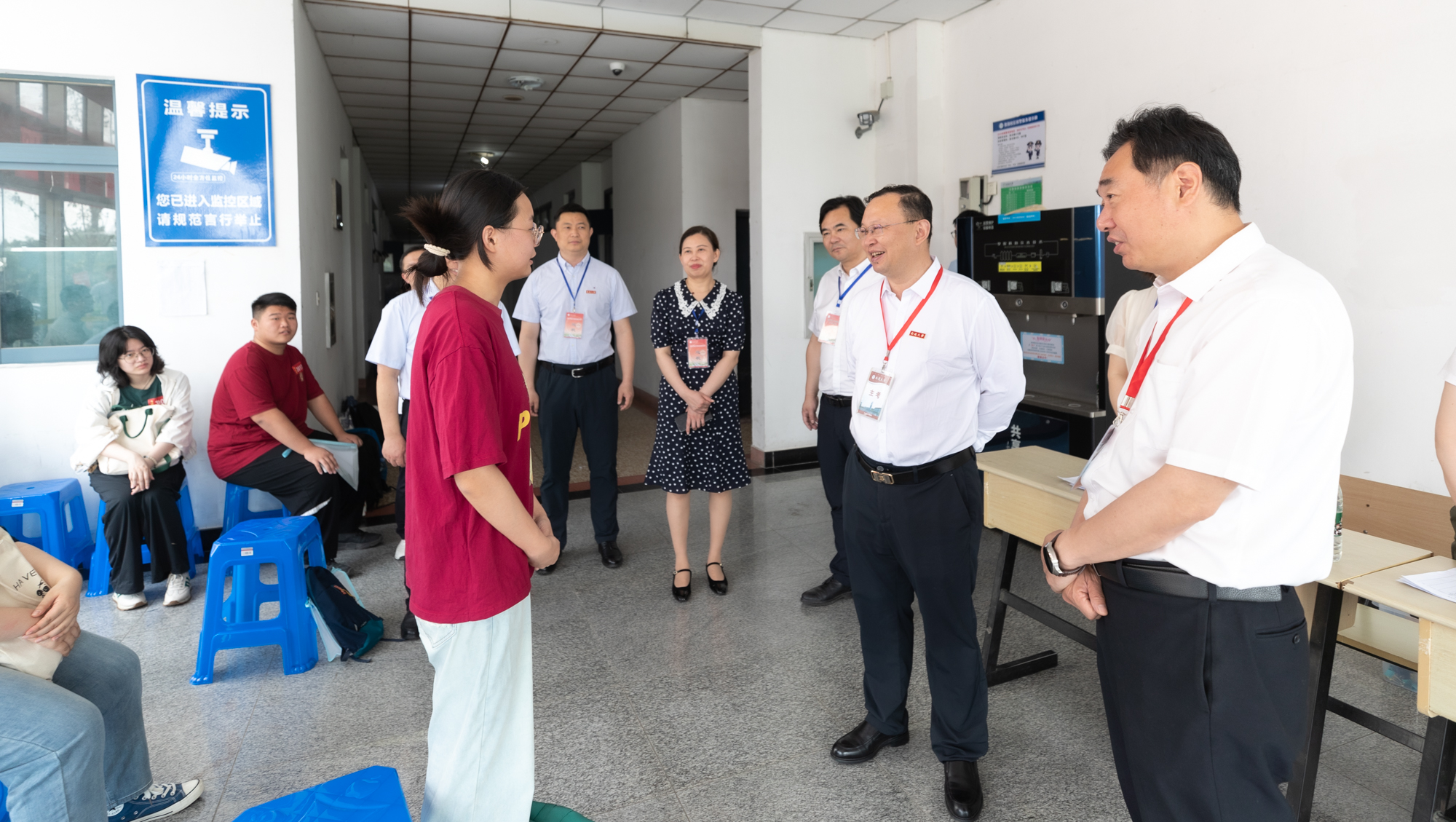 6月16日,beat365唯一官方网站2024年综合评价录取招生选拔考试在啬园校区顺利举行。本次考试共吸引省内1.5万余名高考生报名,经审核及考生报到确认,最终有4457名考生进入面试环节。校党委书记尚庆飞,校党委副书记、校长杨宇民,校党委常委、副校长吉明明到考试现场指导工作,看望考生并慰问考务人员。
