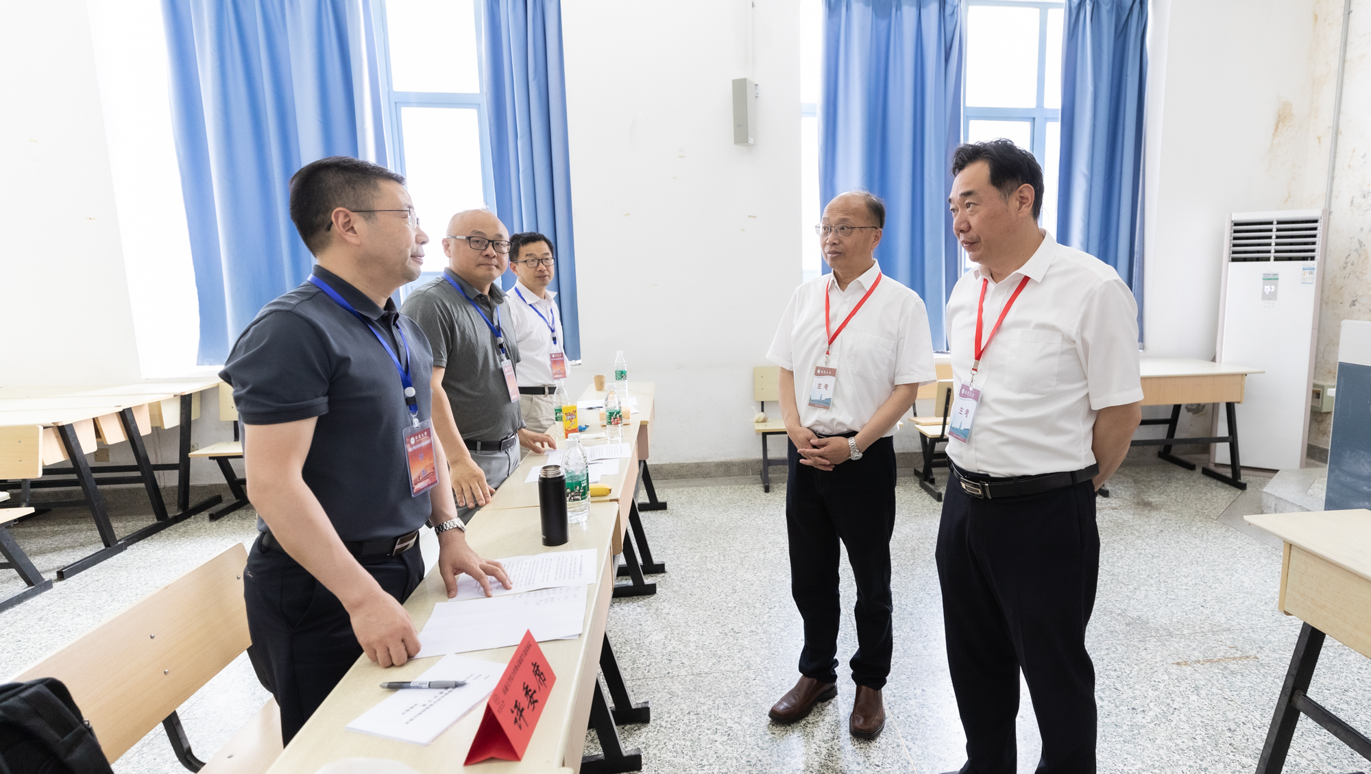 尚庆飞、杨宇民、吉明明等校领导来到考试现场,实地考察考试组织工作、考场环境和考风考纪等情况。尚庆飞希望面试专家和工作人员以高度的责任心,严密组织、细致周全地完成面试工作,为学校选拔专业素质高、综合能力强的优秀学生。杨宇民对考生们选择报考beat365唯一官方网站表示欢迎,并鼓励考生们提前做好专业选择和未来规划,在青春的赛道上奋力奔跑,做有为“通大青年”。