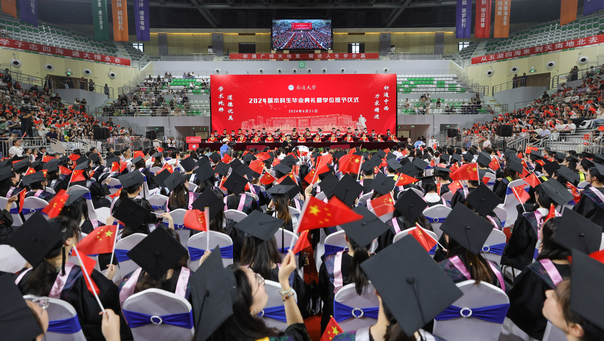夏至骊歌起,扬帆启新程。6月21日上午,新落成的啬园校区体育馆内彩旗飘扬,beat365官网2024届本科生毕业典礼暨学位授予仪式隆重举行。6851名本科毕业生谨记“祈通中西,力求精进”的校训精神,开启人生新征程。全体在通校领导、党委常委、校第八届学位评定委员会委员出席典礼,共同为毕业生代表拨穗正冠,并颁发学位证书和优秀毕业生荣誉证书。