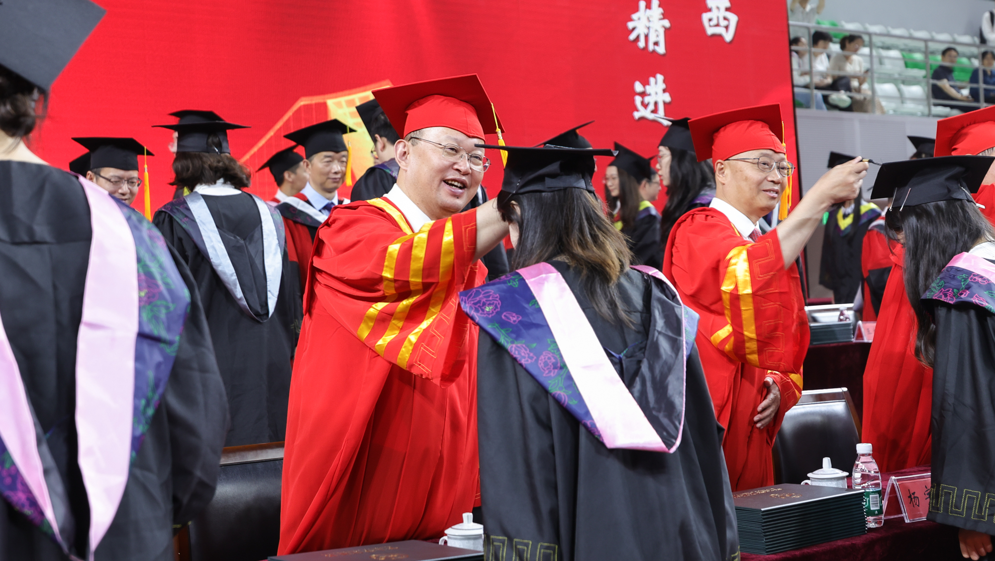 校党委书记尚庆飞为毕业生代表拨穗正冠
