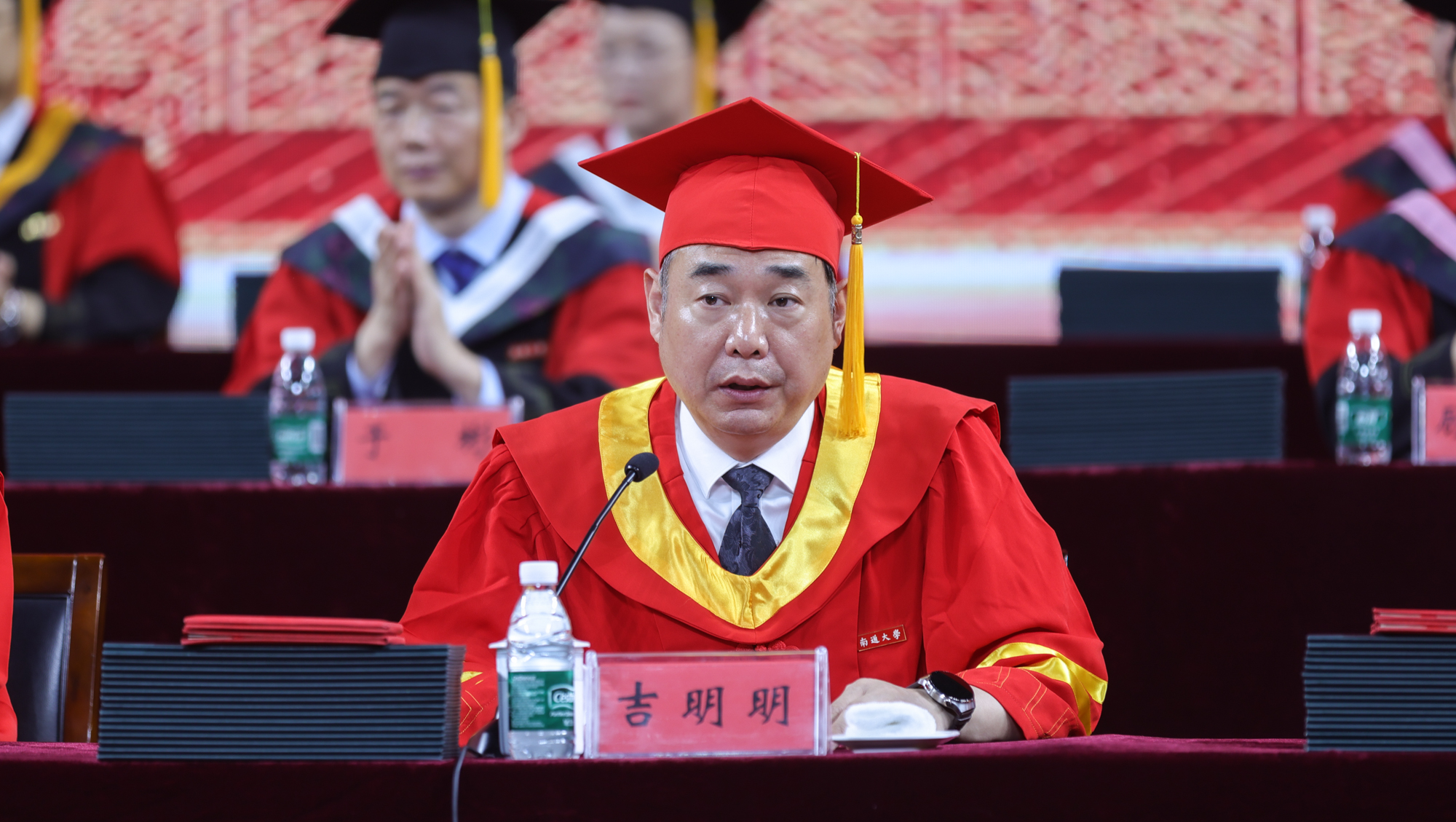 典礼在雄壮的国歌声中拉开帷幕。校党委副书记、校长杨宇民代表学校全体师生员工和海内外校友向2024届本科毕业生致以最热烈的祝贺,向所有为学生成长成才倾注无数心血的师长、家长、亲友以及社会各界人士致以最崇高的敬意和衷心的感谢。他指出,今天不仅是大家学业圆满结硕果的加冕礼,更是启程远航再出发的集结号。他勉励毕业生们牢记习近平总书记的谆谆教诲,立志民族复兴,不负韶华,不负时代,在青春的赛道上奋力奔跑,争取跑出当代青年的最好成绩。