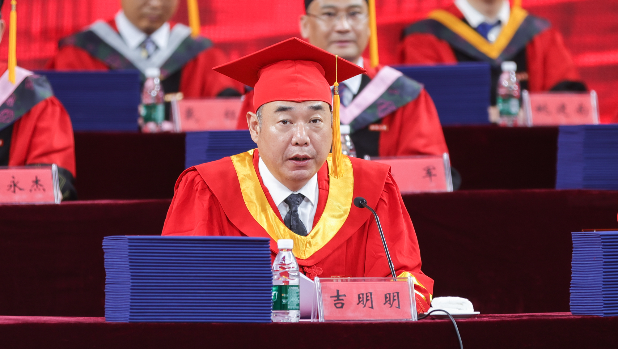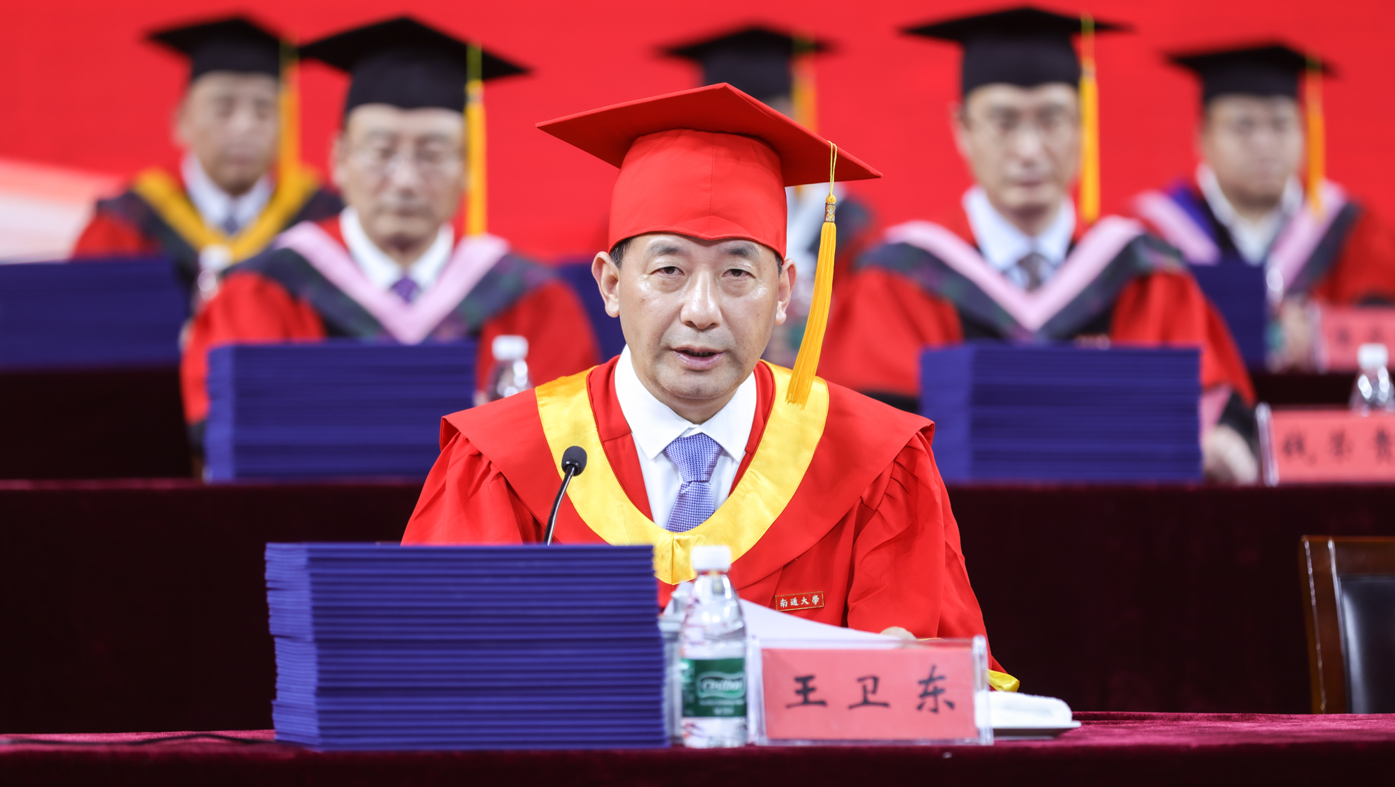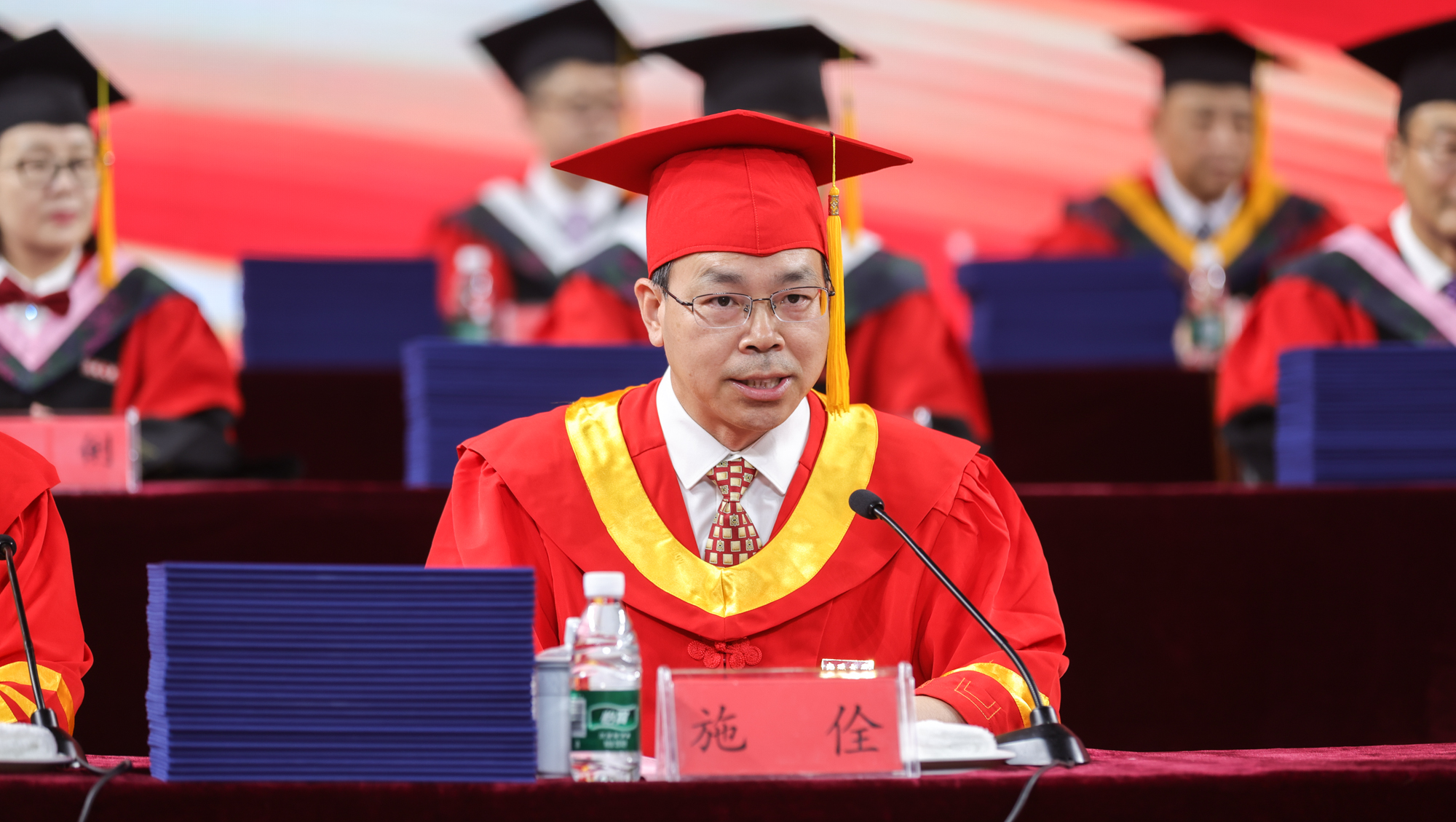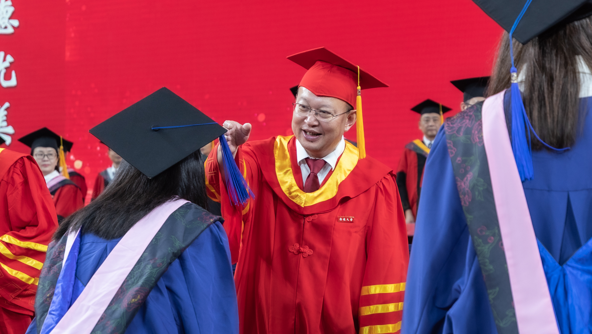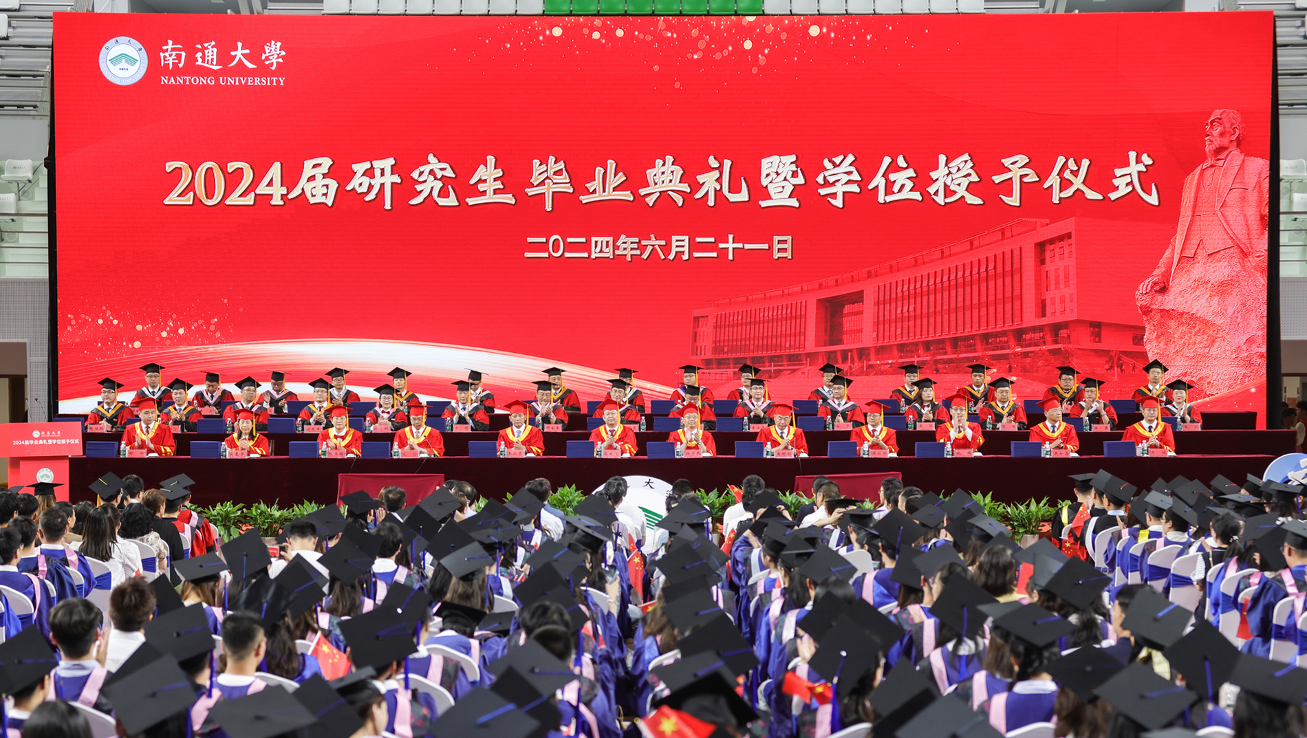 6月21日下午,beat365官网举行2024届研究生毕业典礼暨学位授予仪式。全体在通校领导、党委常委为获得博士学位的毕业生正冠拨穗、颁发博士学位证书,为优秀毕业研究生颁发荣誉证书,并与校第八届学位评定委员会全体委员、导师代表一同为获得硕士学位的毕业生代表正冠拨穗、颁发硕士学位证书。