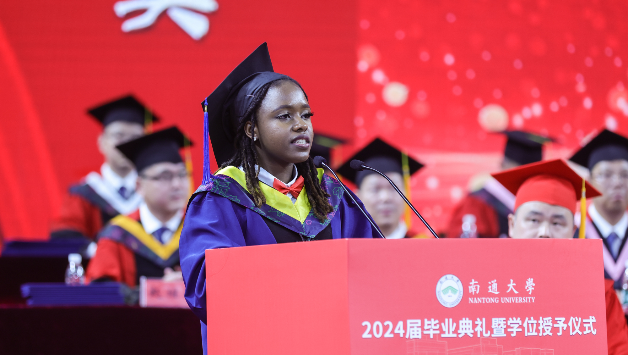 来自津巴布韦的机械工程学院硕士研究生罗林作为国际学生代表发言,向母校和师长表达感谢和敬意。她表示,毕业后将把大家的爱和友谊带回自己的祖国,用亲身经历向津巴布韦人民讲好中国故事,同时希望更多年轻人加入到加深中非人文交流、加强中非文明对话、架设中非文明交融之桥中,为构建新时代中非命运共同体贡献力量。