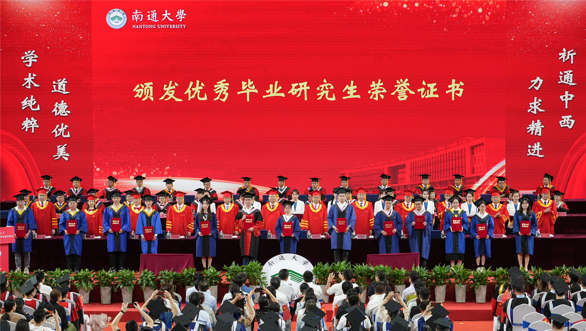 2024届毕业研究生中,有71人次获得研究生国家奖学金,22人获省市级“三好学生”“优秀学生干部”荣誉称号。在校期间,他们潜心学习科研,发表高质量论文1287篇,授权中国发明专利及授权PCT发明专利123项,67位同学考取博士研究生继续深造。他们驰骋创新创业赛场,捧回“互联网+”大赛金奖、研究生数学建模竞赛一等奖、中国研究生电子设计竞赛一等奖、米兰设计周中国高校设计学科师生优秀作品展全国决赛一等奖、全国高校数字艺术设计大赛一等奖等国家级奖项百余项。他们全心投入西部脱贫和乡村振兴,奔赴青海海南州、新疆伊宁、贵州纳雍等地义务支教,把论文写在祖国的大地上。他们用辛勤付出和优异成绩,书写了新时代青年人的责任担当,展现了通大研究生的优秀品质。