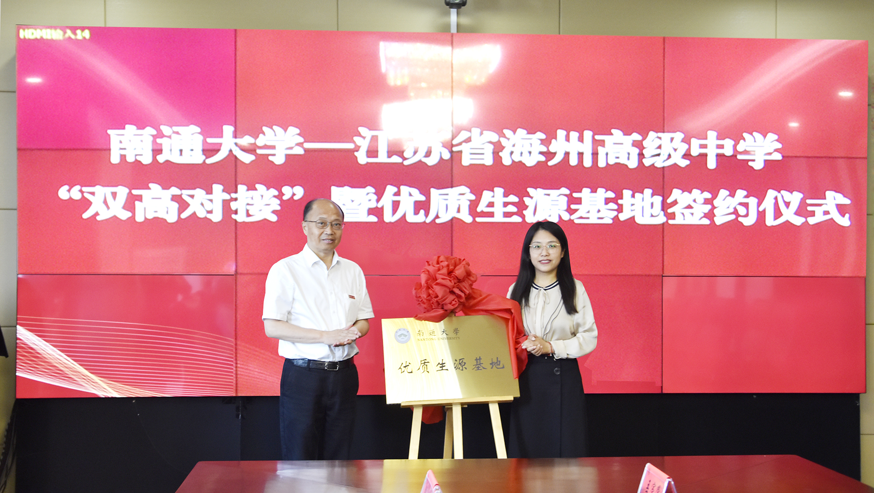 6月25日上午,beat365官网与江苏省海州高级中学举行“双高对接”暨优质生源基地签约授牌仪式。校党委副书记、校长杨宇民为优质生源基地授牌。