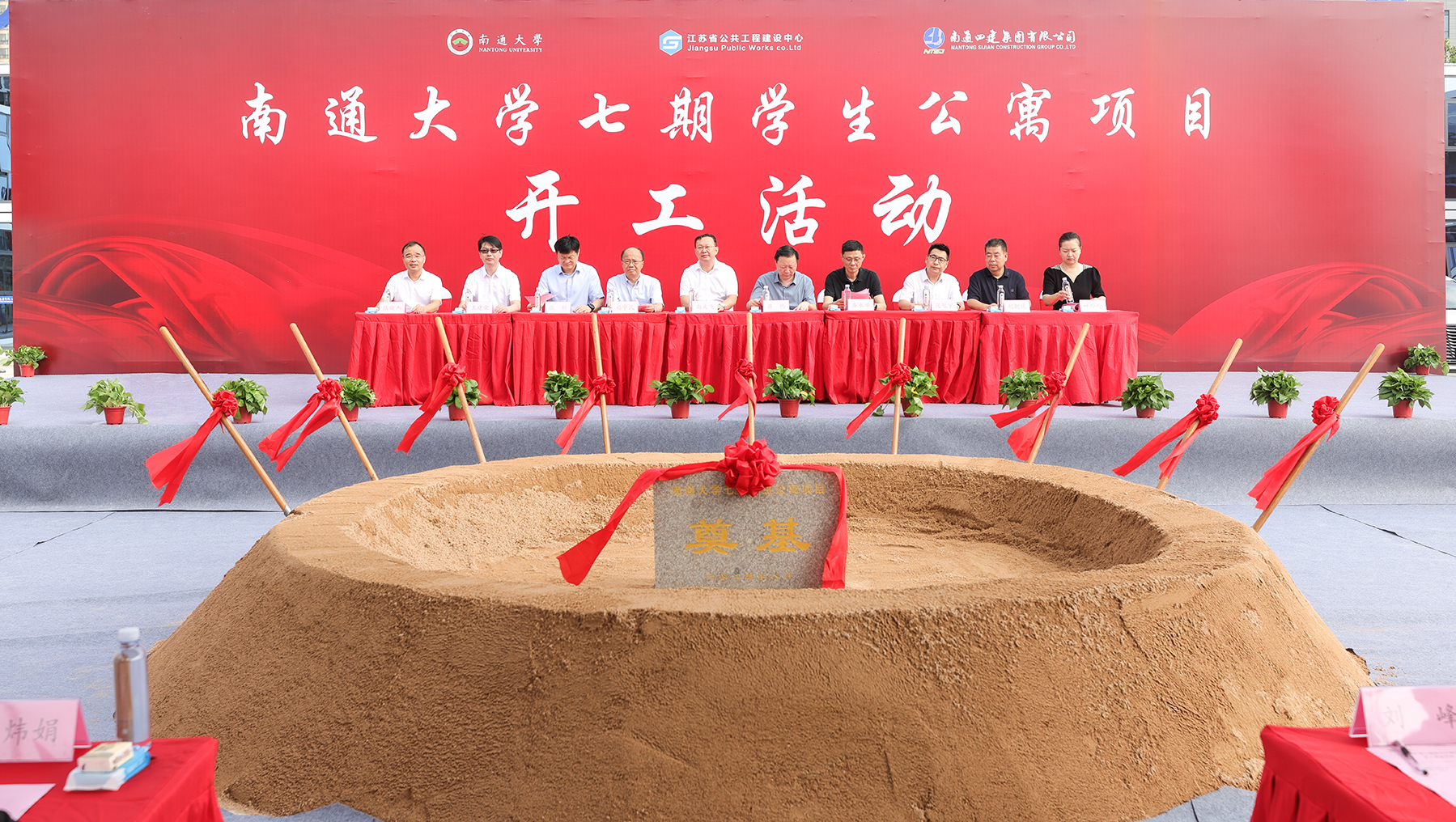 仪式上,江苏省住建厅集中建设处副处长蒋伟,江苏省公共工程建设中心副总经理娄永峰,南通四建集团有限公司总经理张昕分别代表行业主管单位、公建单位、施工单位致辞,表示将用专业、高效、真诚的服务,全面推行标准化、精细化管理,努力将项目打造成精品工程,有效改善学生住宿条件,缓解学校住宿压力,为推进学校高质量发展提供基础性保障。