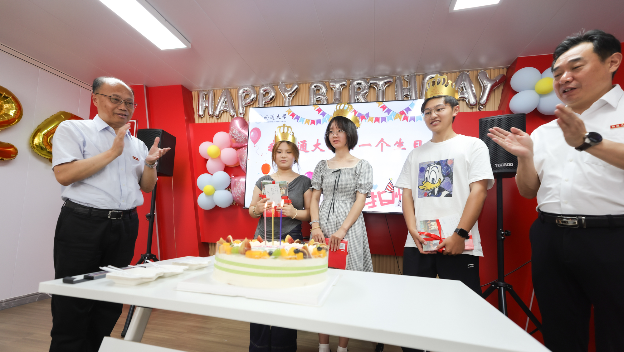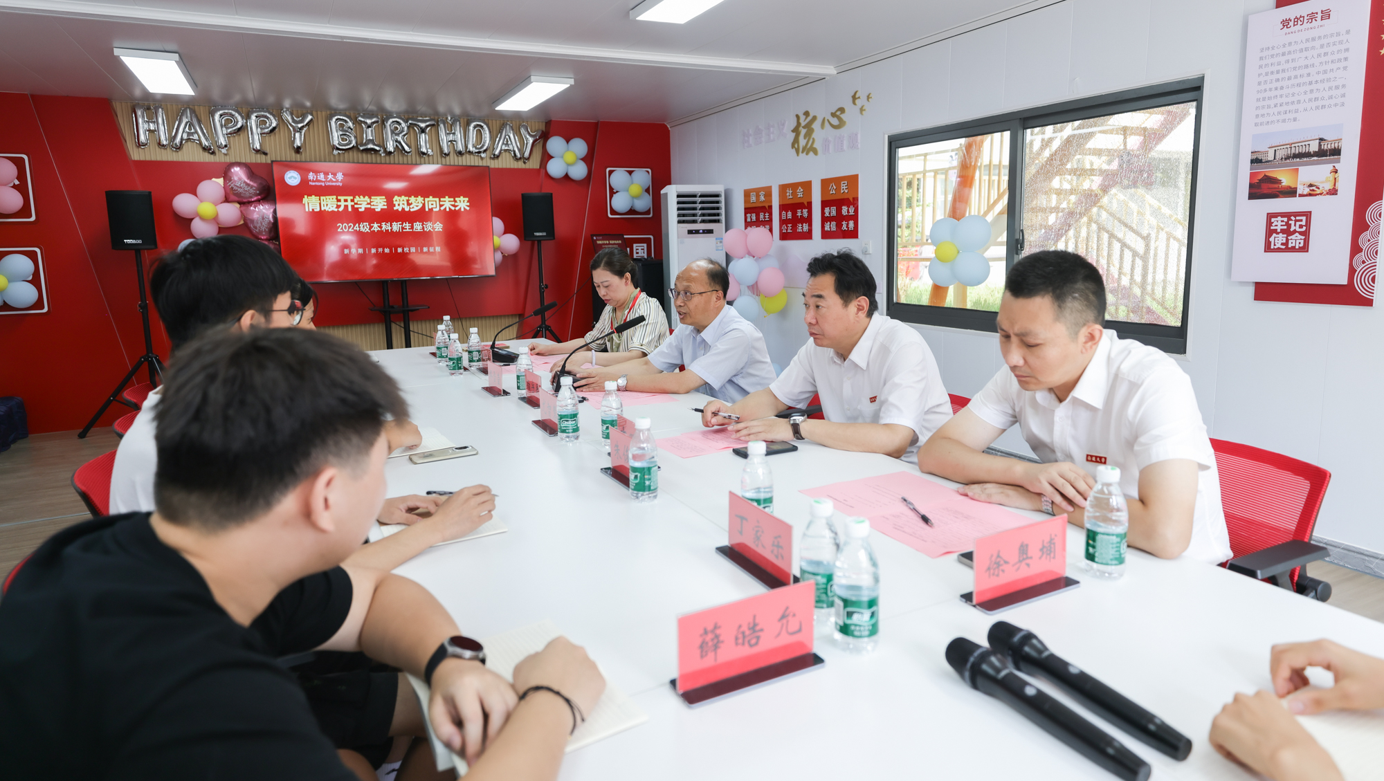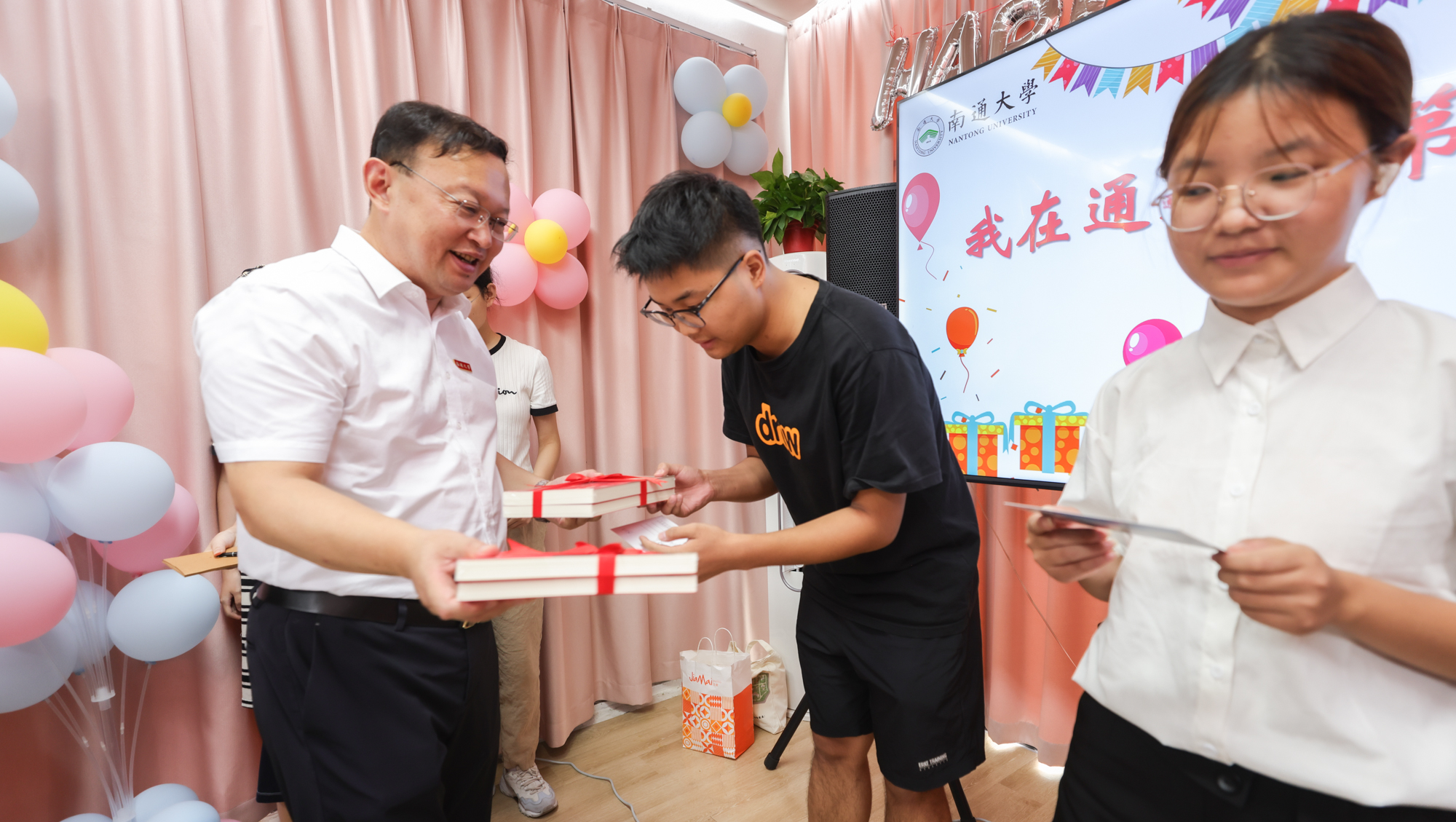在啬园校区“一站式”学生社区和启东校区后勤服务大厅,校领导与新生代表开展座谈交流,向申请“绿色通道”的同学们发放装满日常生活用品的“爱心大礼包”和专项补助金。尚庆飞寄语同学们,要发扬能吃苦肯奋斗的精神,勇于克服眼前的困难;要将实现个人价值和为国家民族作贡献紧密结合起来;要奋发学习、积极向上,学做人、会做事,成为担当民族复兴重任的新时代青年。杨宇民勉励大家,要不怕吃苦、自立自强,学校会为同学们提供最大的支持,希望同学们努力学习、力求创新,刻苦钻研、持之以恒,规划好大学阶段的能力提升,为人生发展打好坚实基础。校领导还为报到日当天过生日的同学送去生日蛋糕、亲笔签上祝福的明信片以及书籍,和他们一起吹蜡烛、唱生日歌并合影留念。在学生宿舍,校领导与新生和家长亲切交谈,询问对学校环境的适应情况,向他们送去祝福与问候。新生们畅谈了个人基本情况、来校报到感受,纷纷表示深切感受到学校的温暖和关怀,一定好好珍惜大学美好时光,努力学好专业知识,早日成长成才。